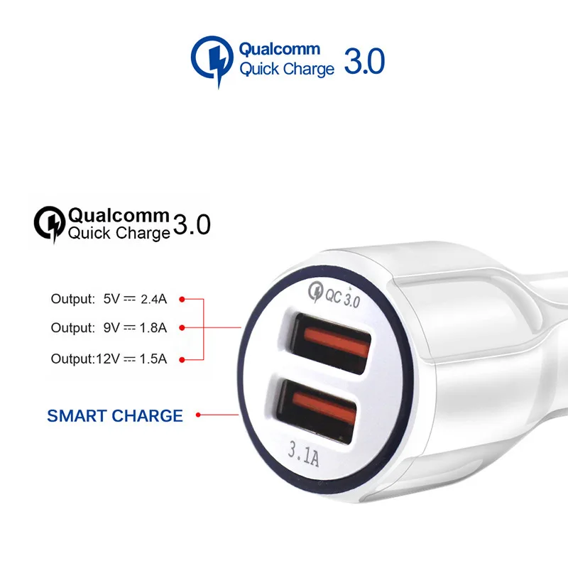 Автомобильное зарядное устройство с двумя портами USB 3,0, 3,1 А, Q...