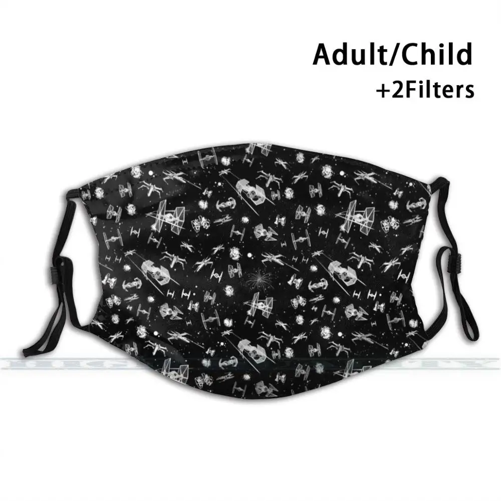 Многоразовая маска для рта Space Ship BattlePrint, моющаяся маска для лица с фильтром и защитой от пыли, с изображением Звездных войн, дроидов, боевого пространства
