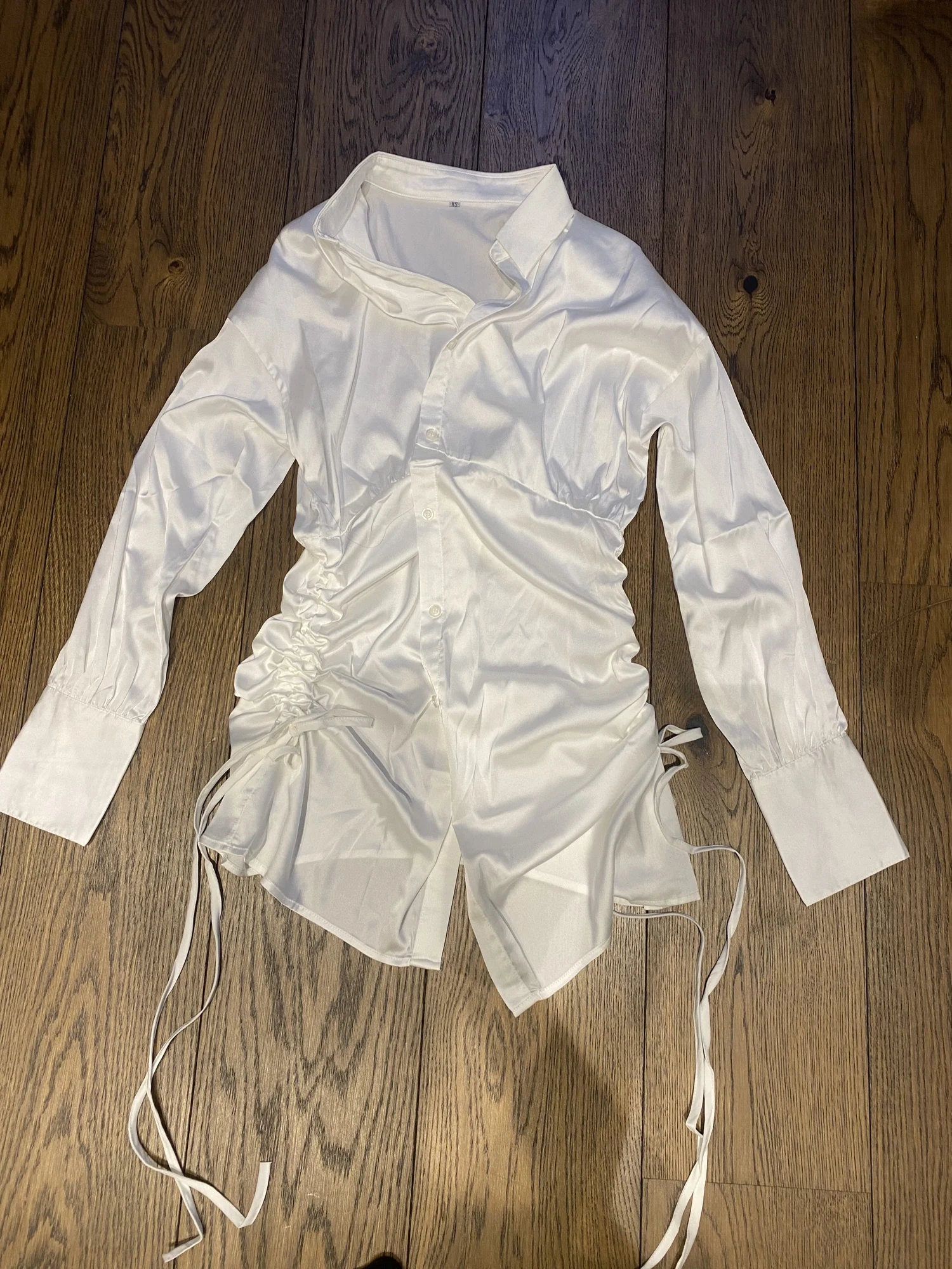 Женское шелковое платье-рубашка на завязках, с длинными рукавами