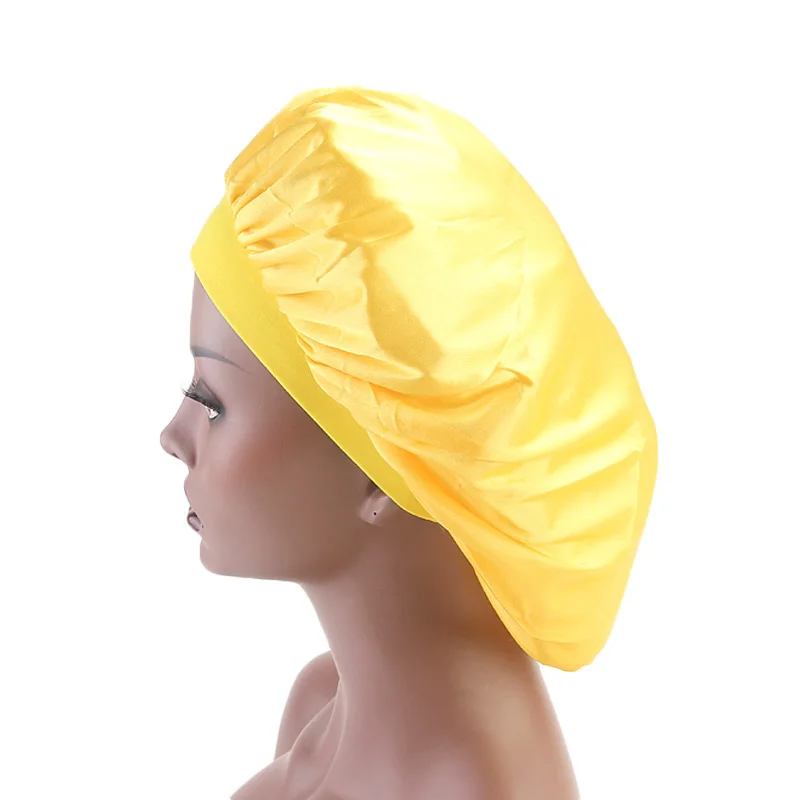 Сплошной цвет атласный капот для женщин сна макияж крышка головы
