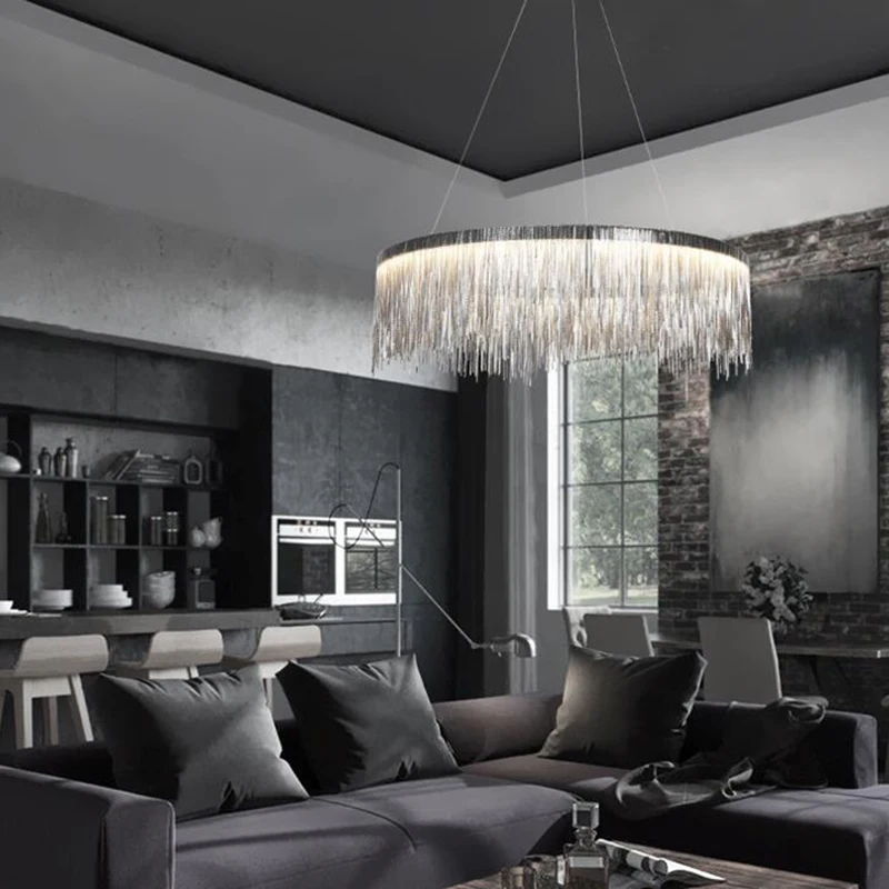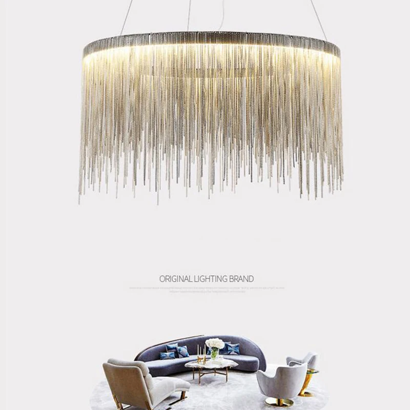 Современное искусство Декор лампы с бахромой цепная Люстра для спальни, гостиной, ресторана, освещения