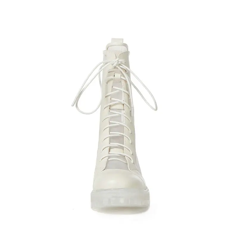 Ботинки женские на платформе и каблуке, из натуральной кожи, с перфорацией, на шнуровке