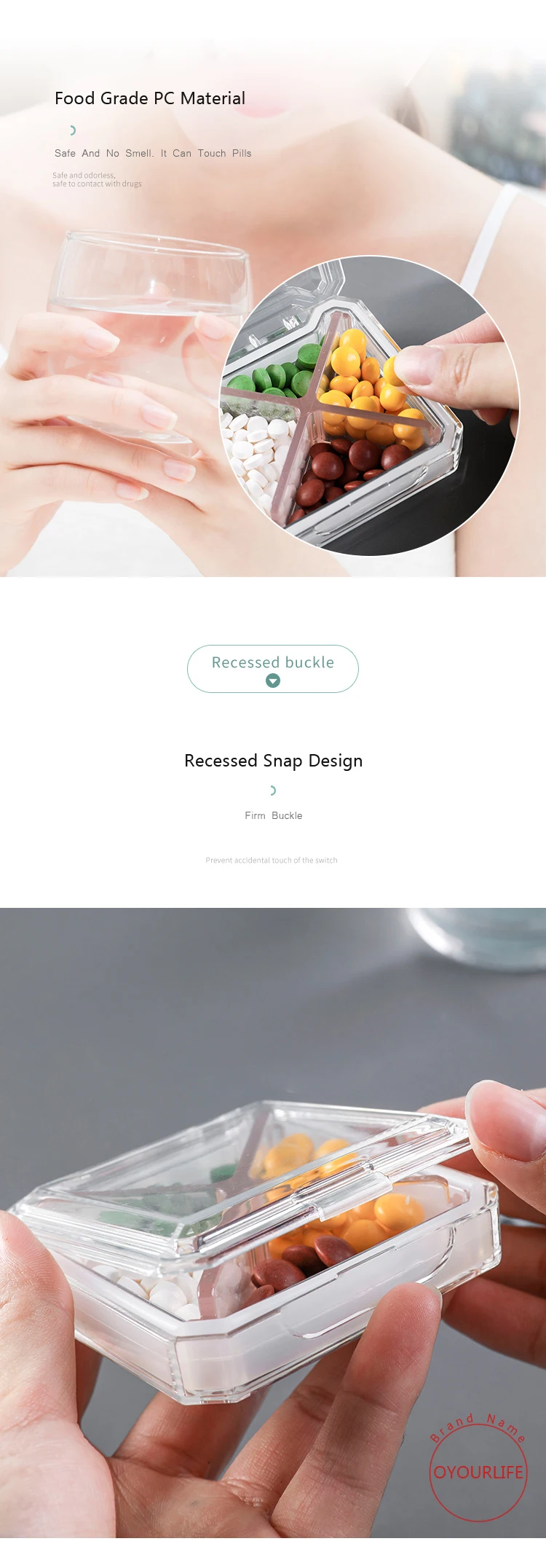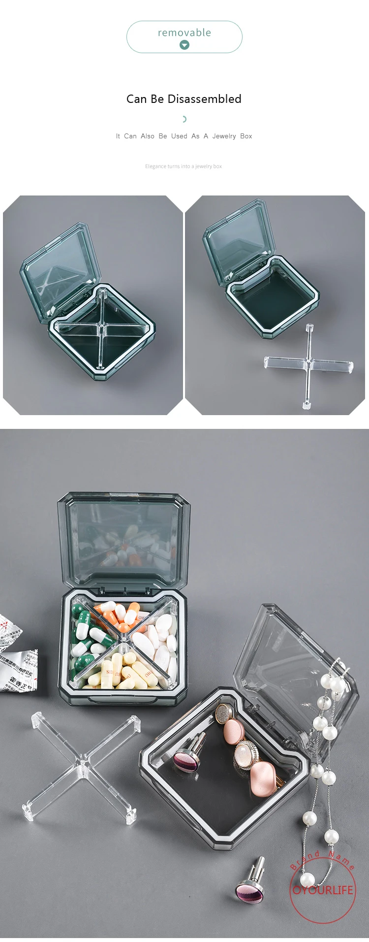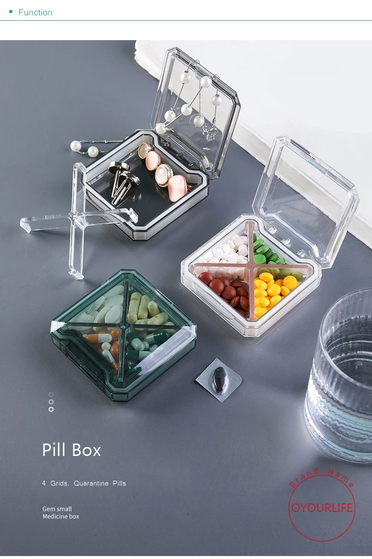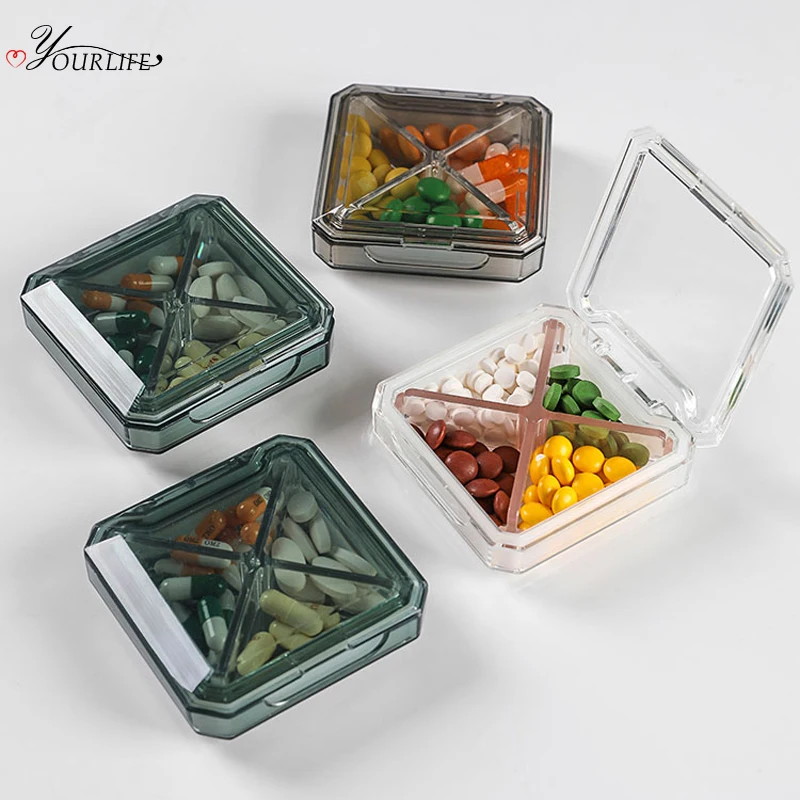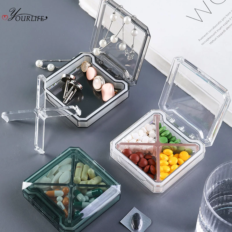 Контейнер для таблеток OYOURLIFE, прозрачный, пластиковый, с 4 отделениями