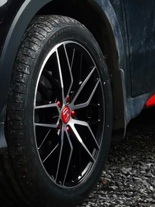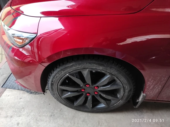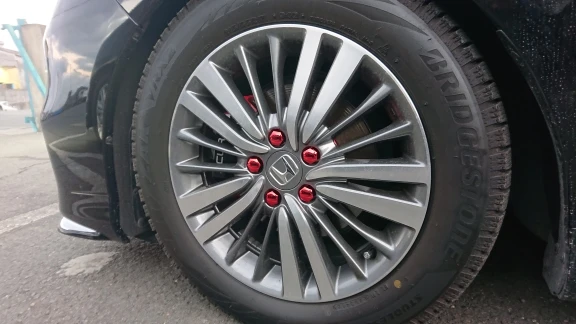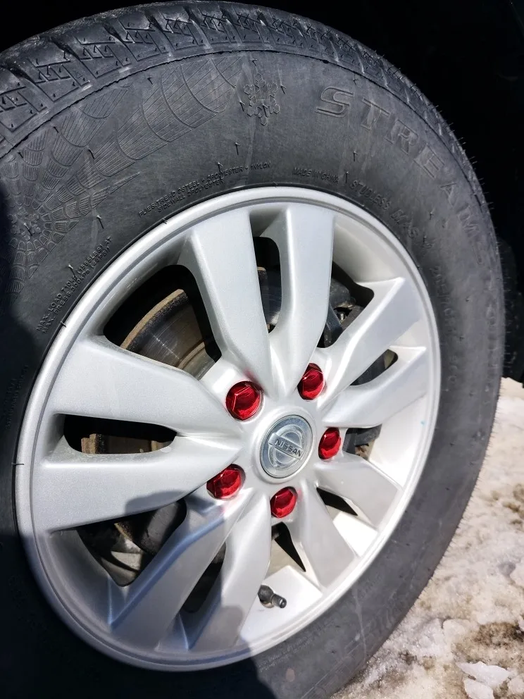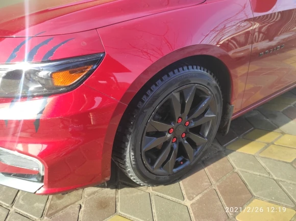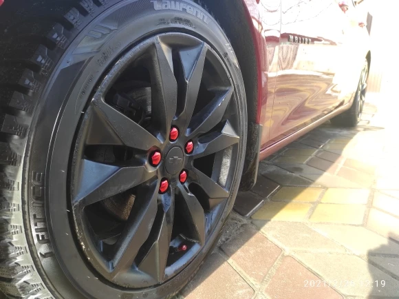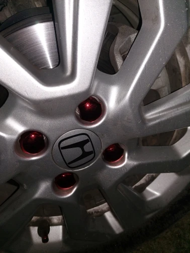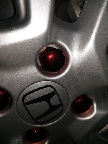 Тупо пластмасовые колпачки на гайки(красные, блЯстят)... Всё чётко, быстро. Колеса прербразились, так сказать. Фото позже.