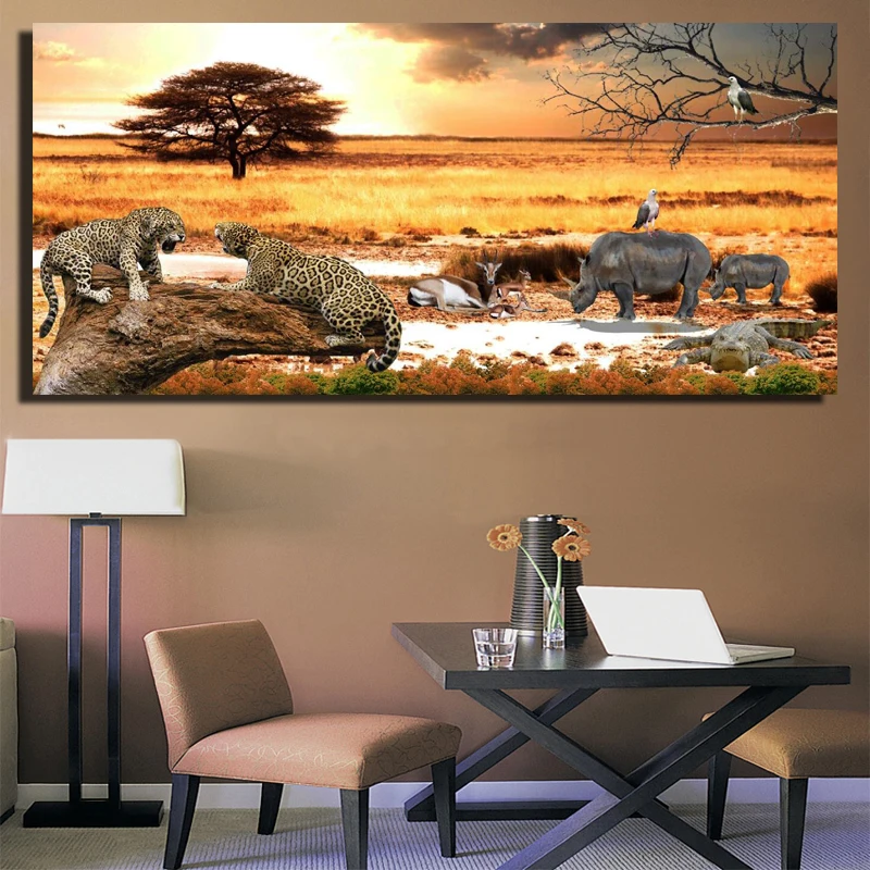 Плакаты и принты с африканскими пейзажами, пастбища и Закат-картины с гепардом и носорогами для стены гостиной-картины с животными