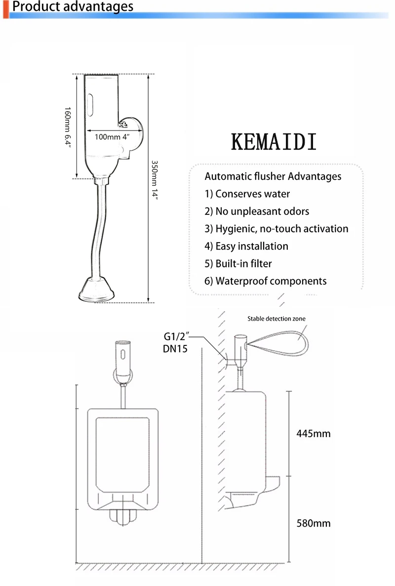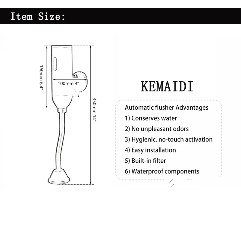 Добро пожаловать в мой официальныйМагазин: Характеристика: •Тип: oilet автоматический сливной клапан датчик писсуар кран •Уникальный бренд KEMAIDI •Способ установки: настенный •Есть 3 цвета на ваш выбор •Хромированная отделка и Золотой/матовый черный/розовое золото •Материал: латунь •В комплекте со всеми аксессуарами •Легко чистить. Может быть очищен мягким мылом, чтобы обеспечить безтарнический блеск жизни •Поставляется с 24 месячной гарантией производства Что в коробке: 1 * Весь товар Все детали для установки