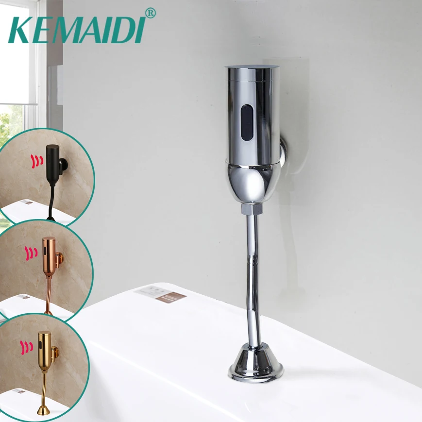 Сенсорный хромированный черный писсуар KEMAIDI автоматический туалет Flush Valve Sensor, настенный сенсорный кран для ванной комнаты автоматический туалет Flush