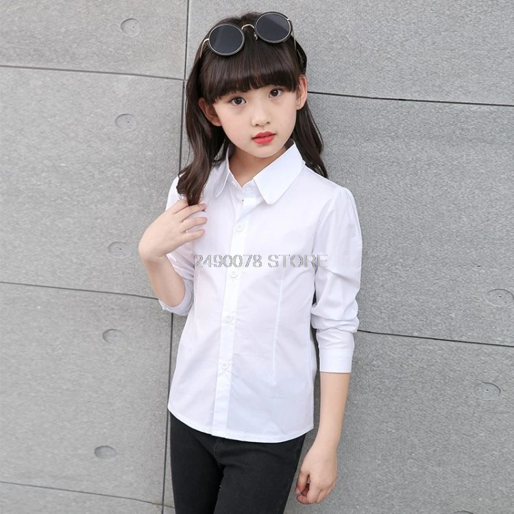 Детские рубашки для девочек, летние белые блузки, Детская Рубашки для дня рождения, школьная форма для выступлений, От 4 до 16 лет, праздвечерние чные блузки