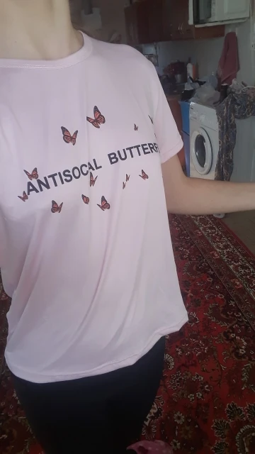 Посылка пришла быстро. Футболка не как в описании. Она прозрачная. Размер мне маленький. Хотела взять S, но потом передумала и взяла М, но все равно маленькая. Я хотела чтобы она была оверсайз поэтому взяла М. Но принт качественный, мне понравился. Вообщем футболка не очень.