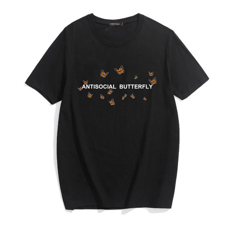 Женская футболка Harajuku, Забавный винтажный топ с рисунком бабочек, летняя, свободная, повседневная, шикарная, женская футболка