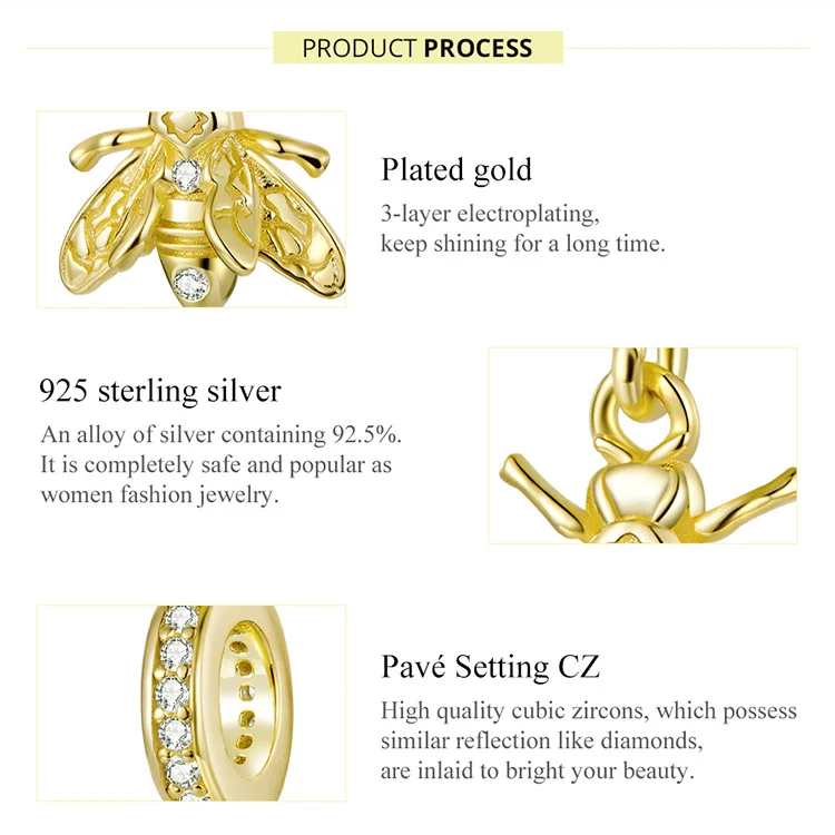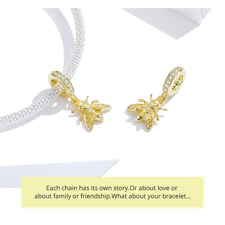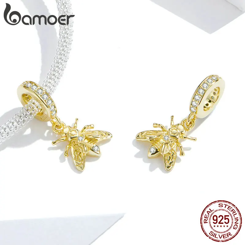 Bamoer 925 пробы цвет серебристый, Золотой Цвет пчелы Кулон Шарм соответствуют оригинальному браслету, браслет на запястье в европейском стиле фирменное хорошее ювелирное изделие BSC249