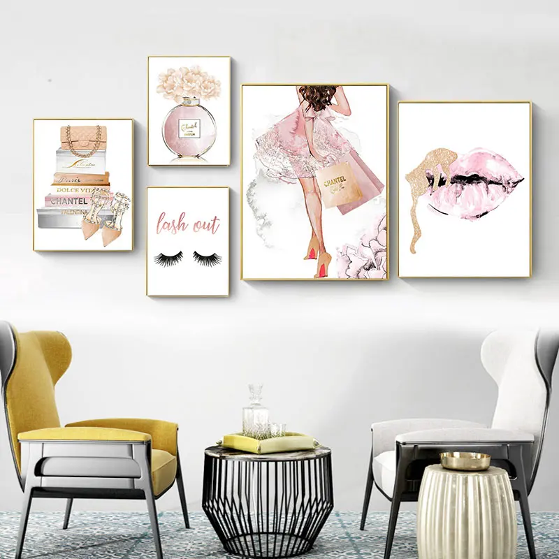 Настенные постеры для украшения дома картины на холсте Nordic художественной росписи Peinture розовый средства ухода за губами ресниц духи модные настенные принты