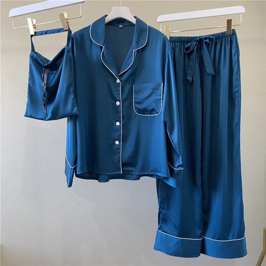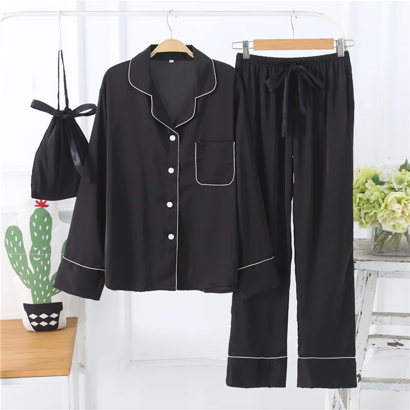 Женская шелковая пижама Daeyard, Повседневная Пижама большого размера с длинными рукавами, комплект из 2 предметов с сумкой, сексуальная ночная рубашка, домашняя одежда