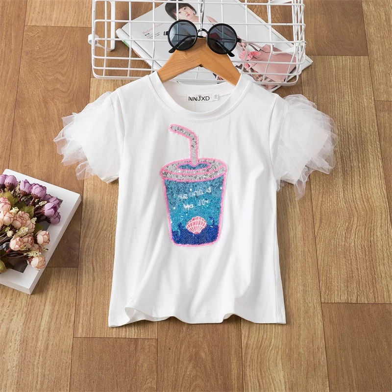 Футболка для девочек; Детская летняя белая футболка с короткими рук...