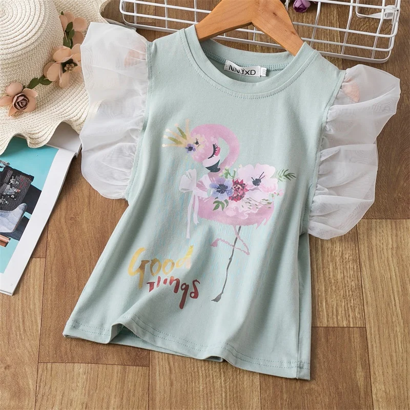 Летняя футболка для девочек, детская хлопковая футболка с коротким ...