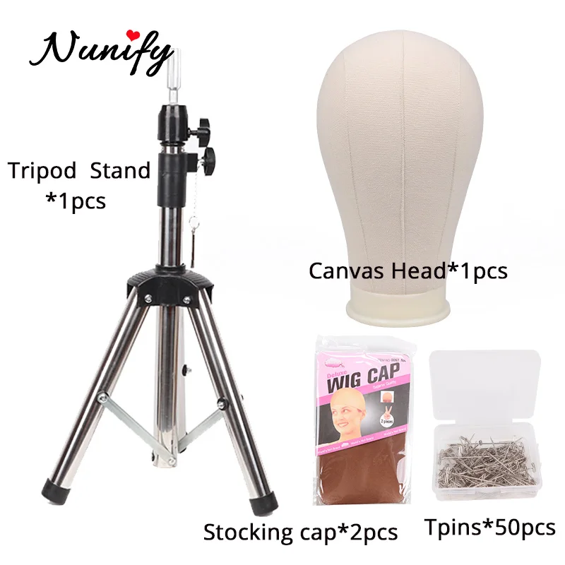 package includingtripod stand ,a canvas head ,T pins and 2pcs wig cap