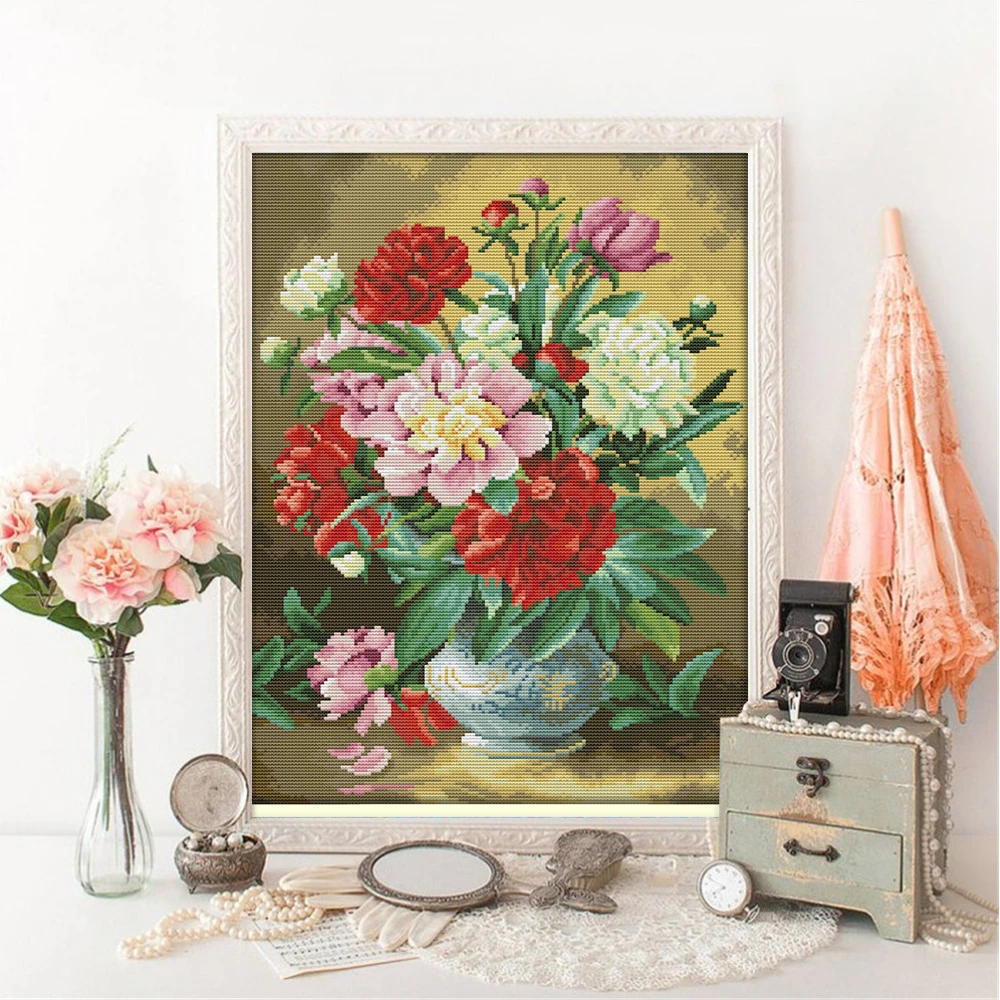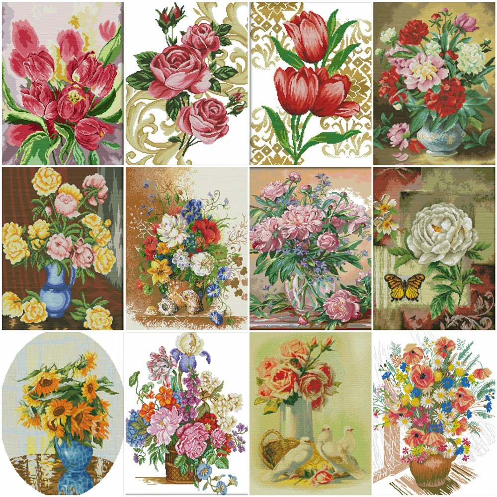 HUACAN вышивка крестиком цветок в вазе наборы розы цветочные наборы...