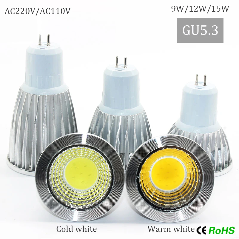 E27 E14 GU10 GU5.3 MR16 LED COB 9 Вт 12 Вт 15 Вт белыйтеплый белый ...