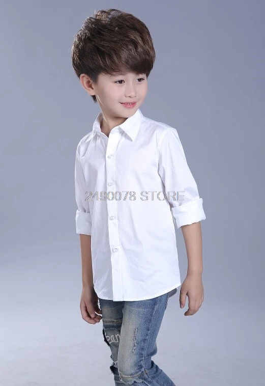 Деловая рубашка для мальчиков и девочек, брендовая Модная белая рубашка с длинными рукавами для мальчиков, школьная детская одежда для выступлений, блузка