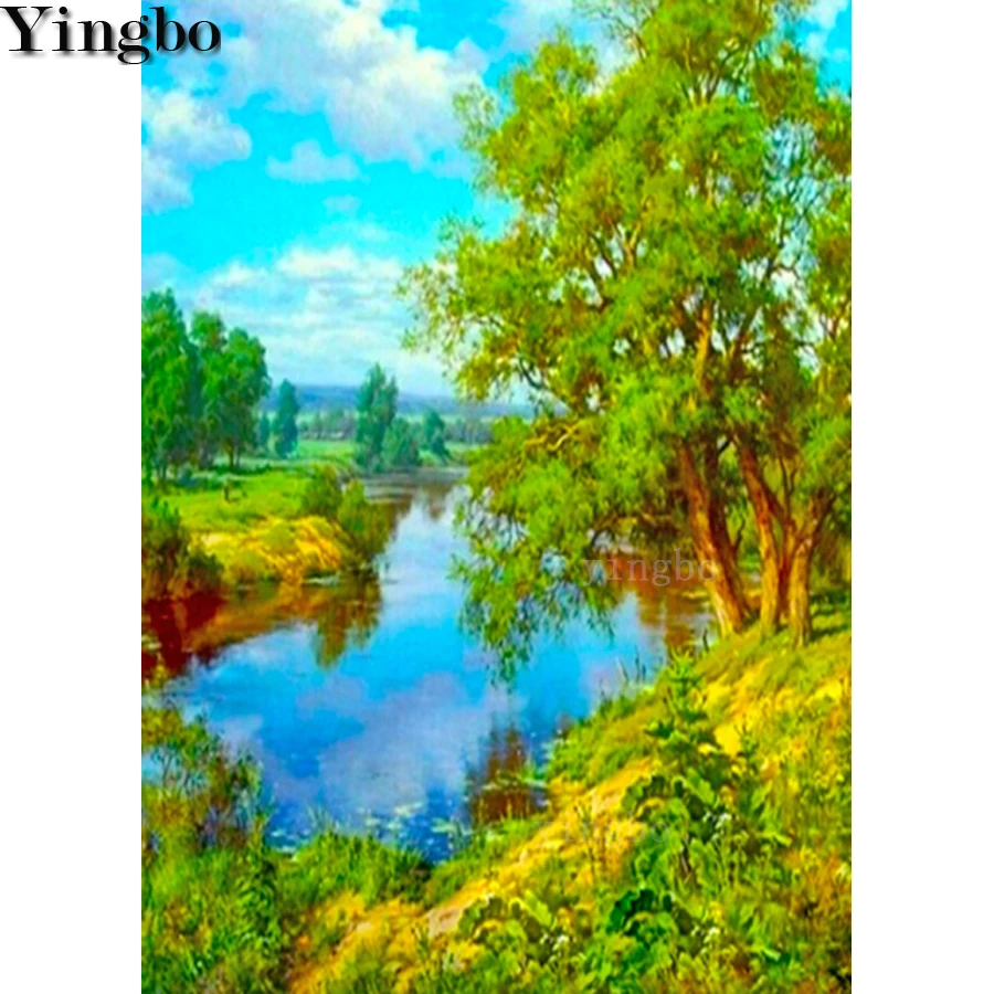 5d алмазная картина diy Ручная работа Стразы весенние березовые леса зеленое озеро Алмазная мозаика вышивка крестиком наборы украшения
