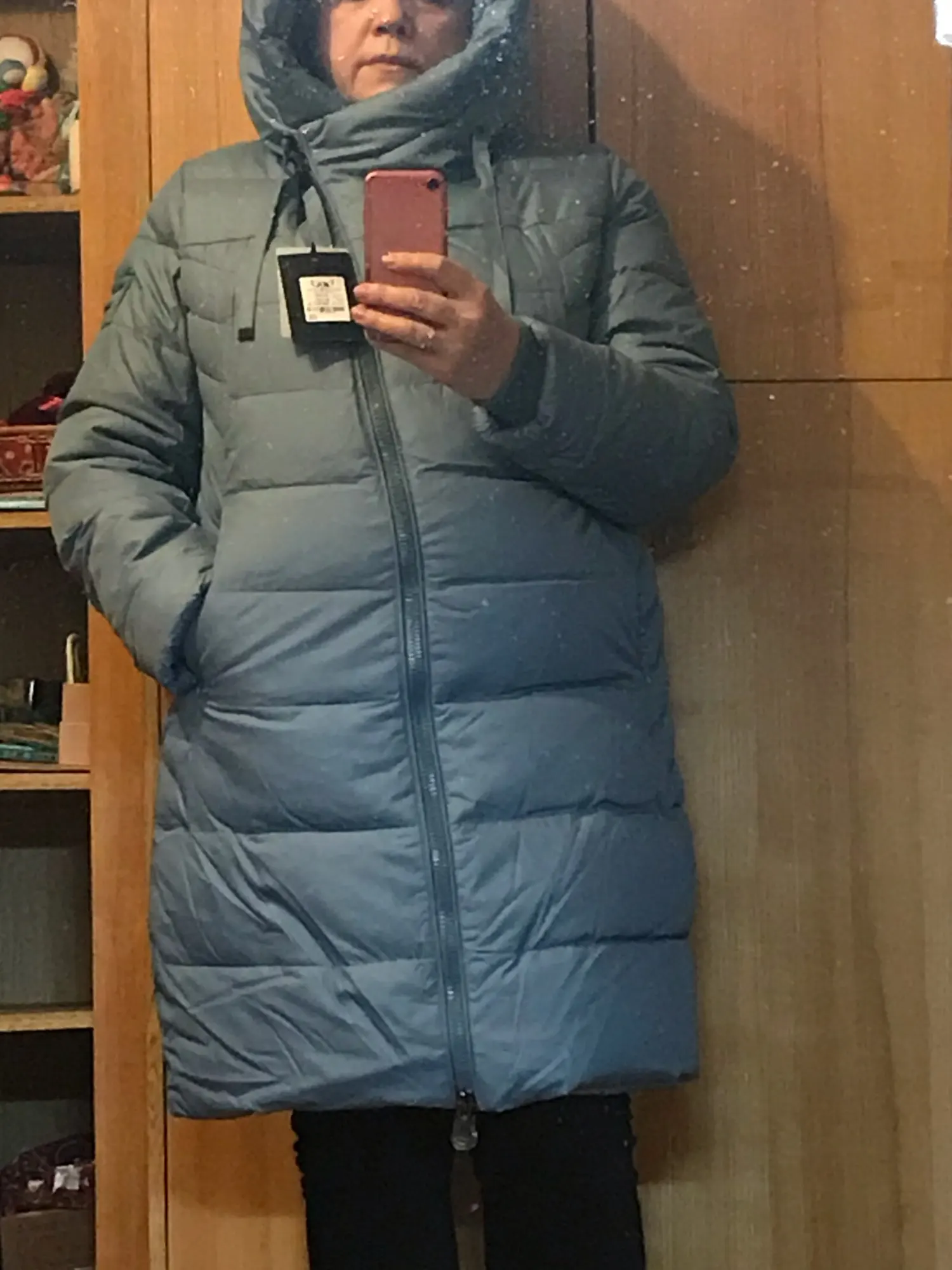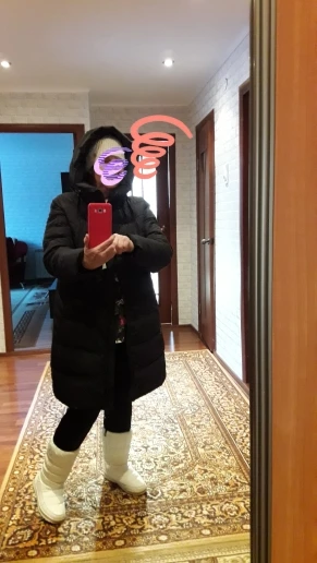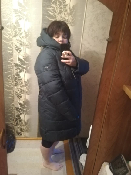 отличный пуховик вторая моя покупка в этом магазине пришла посылка быстро,размер подошёл идеально,покупала маме на рост 158 ниже колена см на 10 по поводу размера советую проконсультироваться у продавца,по отзывам у всех все индивидуально, полностью соответствует фото продавца
