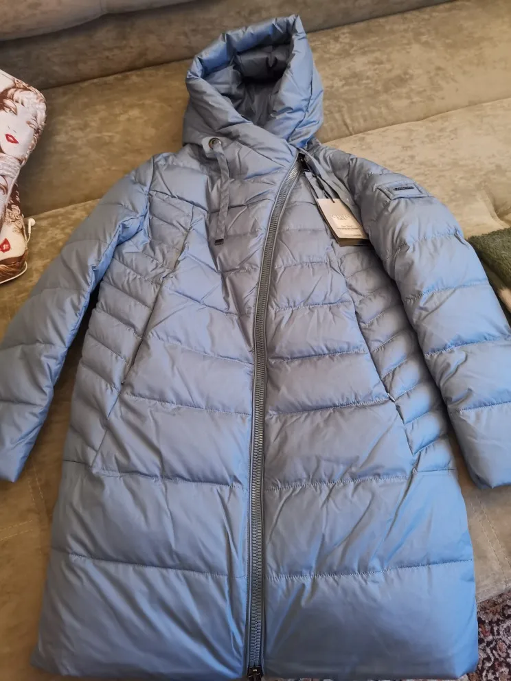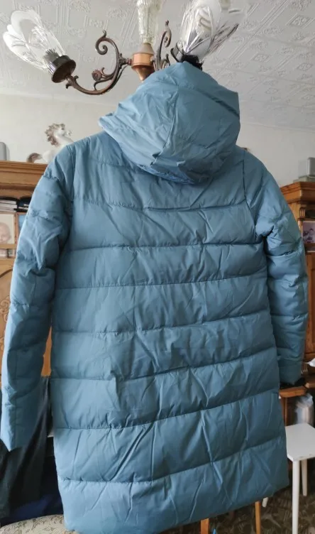 Я очень довольна курткой, заказала XL, российский ношу 48, все село, как влитое. Хочется отметить качество пошива, на 5+, короче довольна, как слон, советую. Голубой цвет немного отличается от фотографии, не такой яркий. Эта куртка не набита пухом, подкладка синтепон, но тепло, думаю, до -10, -12, будет нормально, это надо понимать при заказе, есть карманчики боковые, 1 внутренний. Куртка отличная, рекомендую, я получила то, что хотела. На улицу ещё не носила.