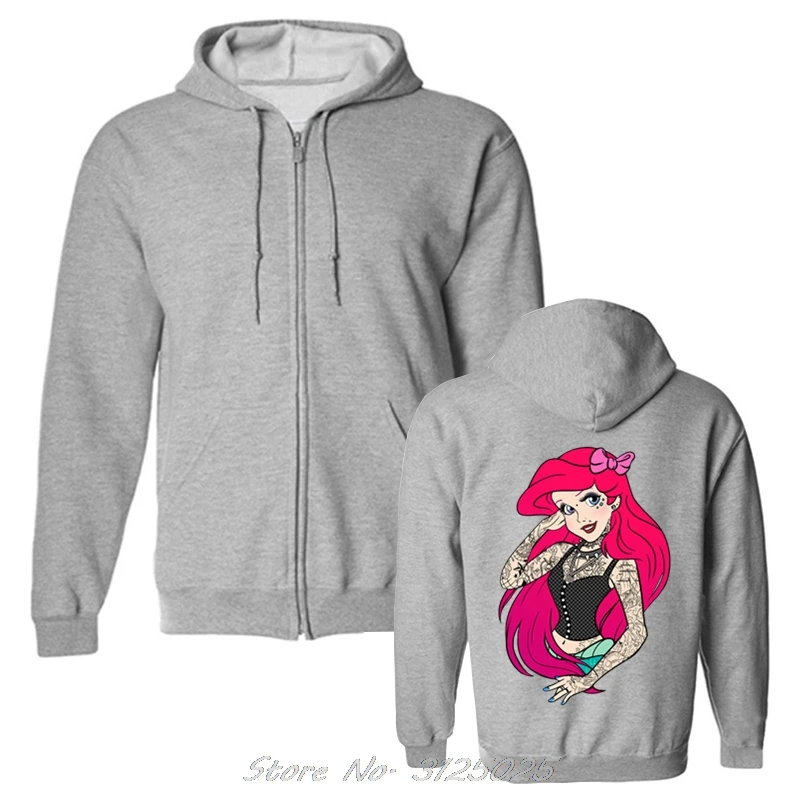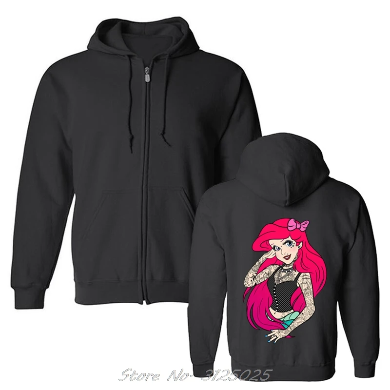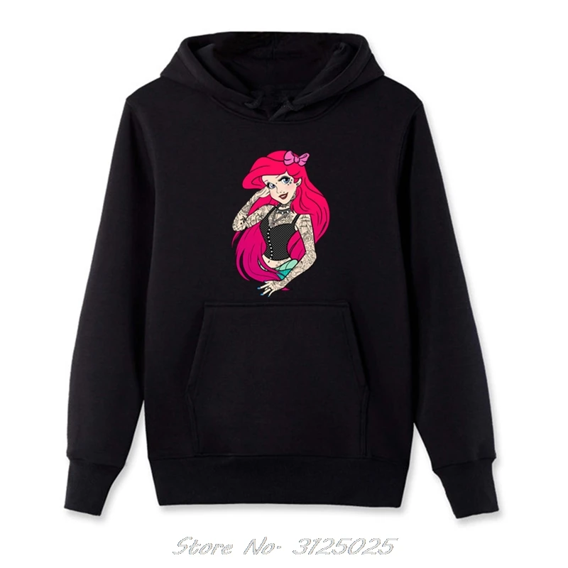 Толстовка мужская флисовая в готическом стиле, Свитшот в стиле панкпринцессыАриэль, с забавным рисунком, осень-весна