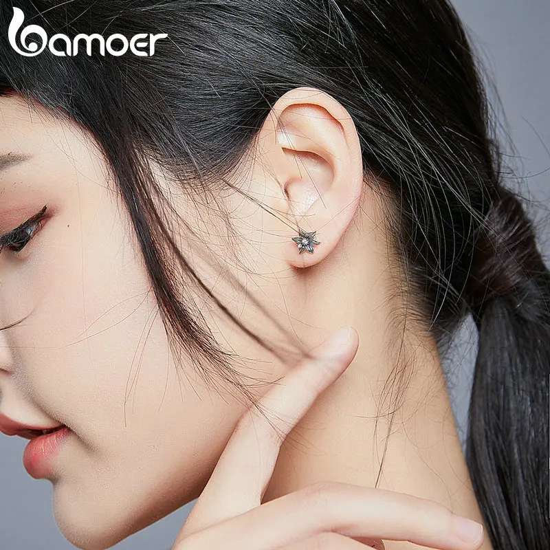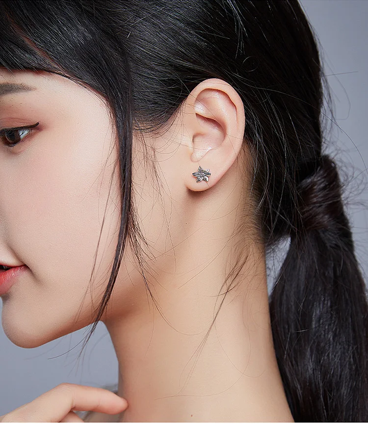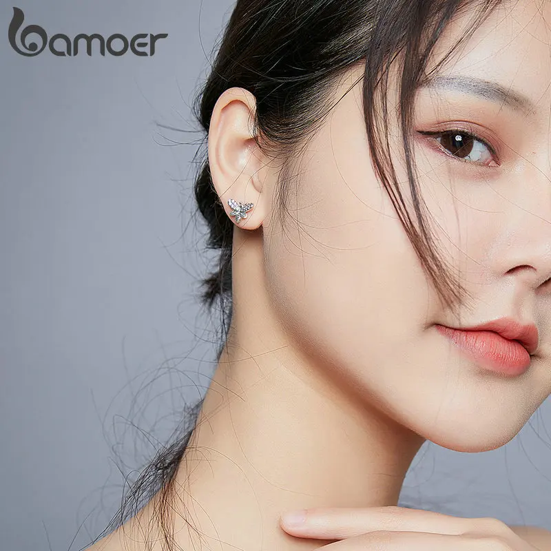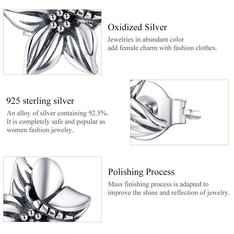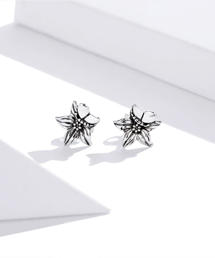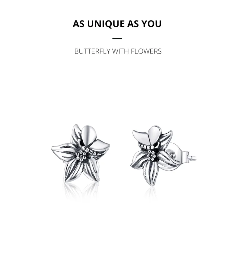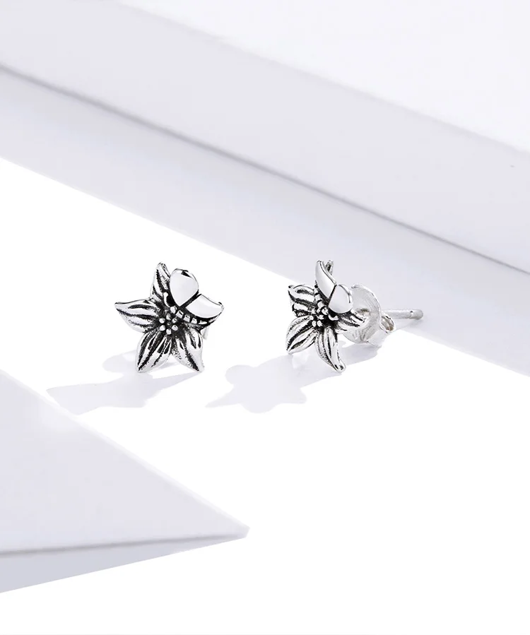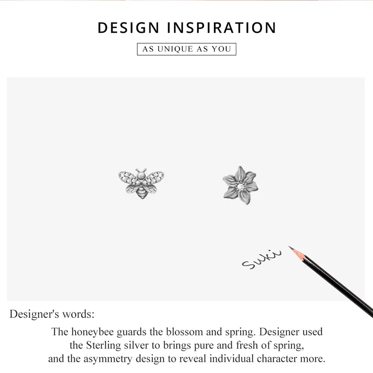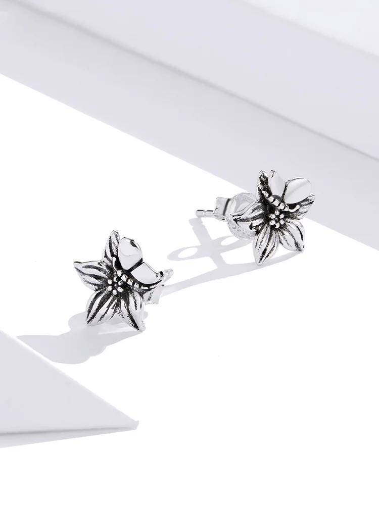 Женские серьги-гвоздики из серебра 925 пробы с пчелами и цветами