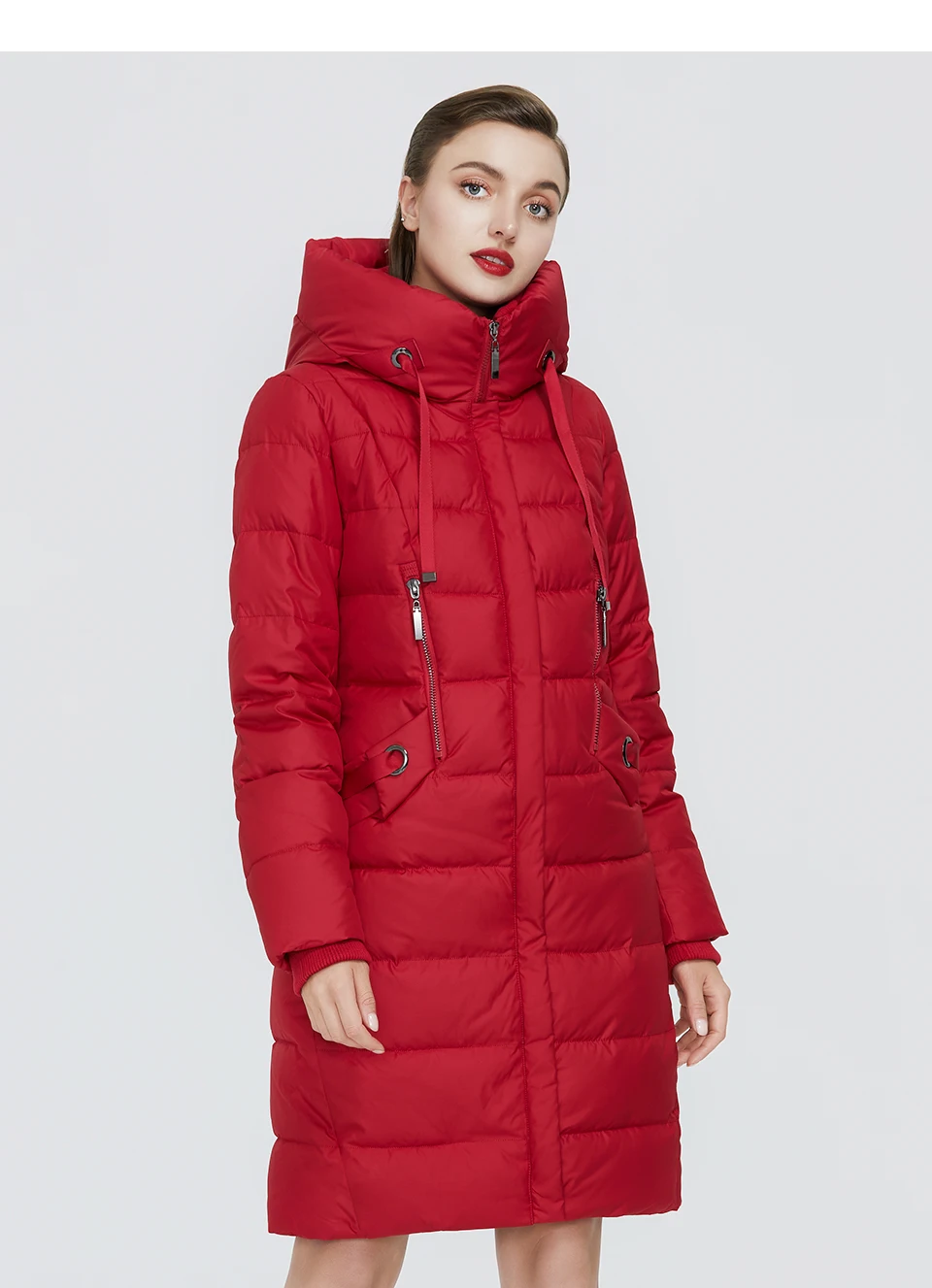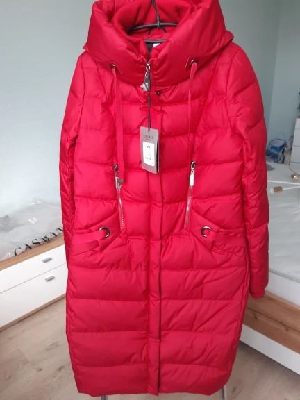 Пуховик прислали очень быстро, доставка составила 3 недели до Гомеля. Красивый, качественно пошит, швы ровные, замки рабочие цвет красный не едкий. Плотный, теплый, шарф не потребуется, горло закрывает плотно. Размерной сетке соответствует, если хотите посвободнее берите на размер больше. На свой 44-46 взяла М в бедрах хотелось бы посвободнее, лучше брать Л.