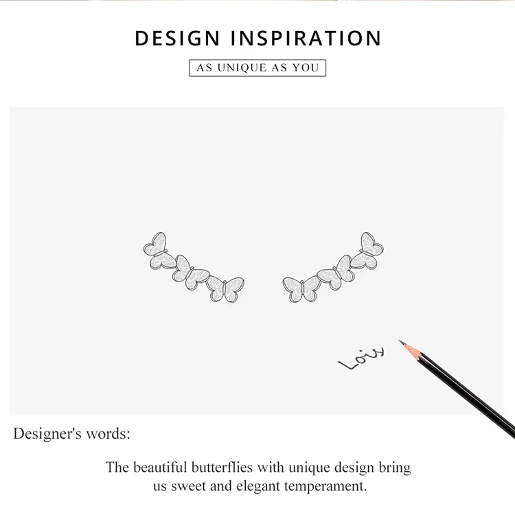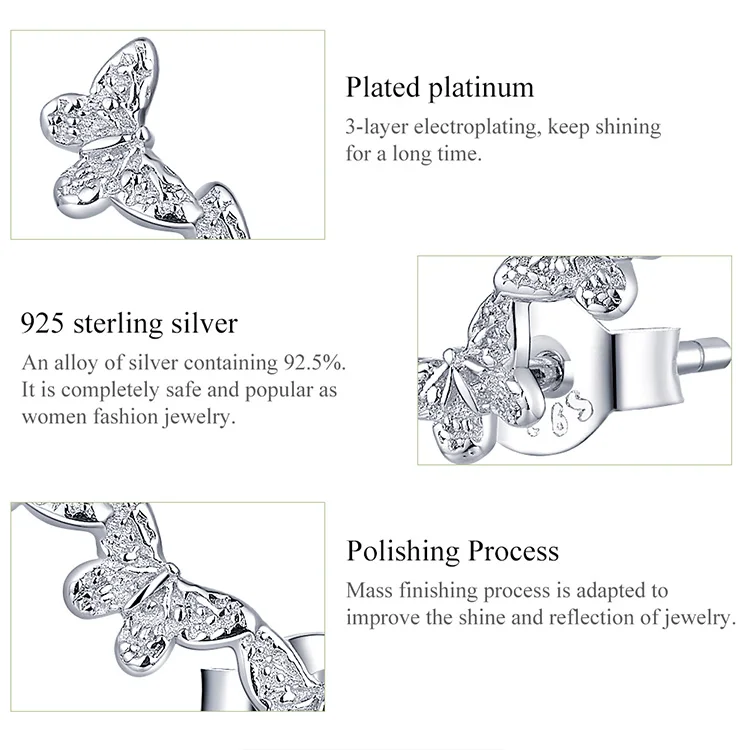 Женские серьги-гвоздики с насекомыми bamoer BSE377, серьги из натурального стерлингового серебра 925 пробы с эффектом пуш-ап, три бабочки, ювелирные изделия для булавки с заклепками