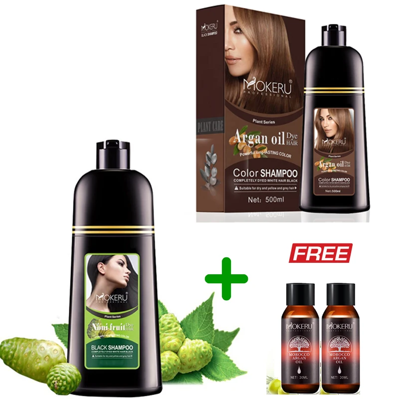Mokeru 2 шт.лот натуральный шампунь для окрашивания волос долговечная эссенция арганового масла для окрашивания волос шампунь для покрытия белых волос