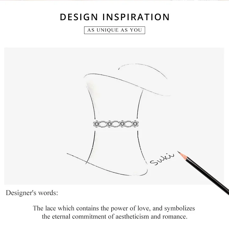 Материал:S925 + покрытая платиной + паве установка CZШирина: 0,2 смОписание:Кружево, которое содержит силу любви и символизирует вечную привязанность эстетики и романтики.