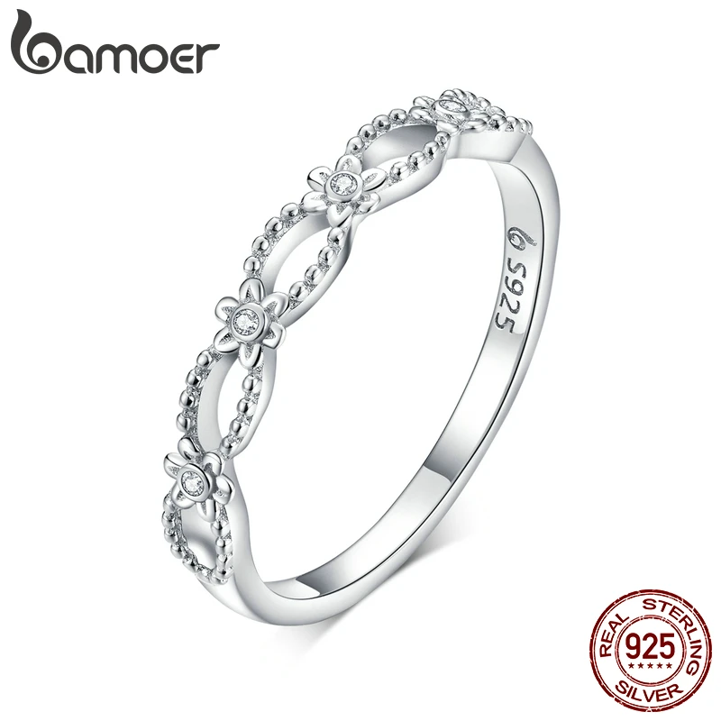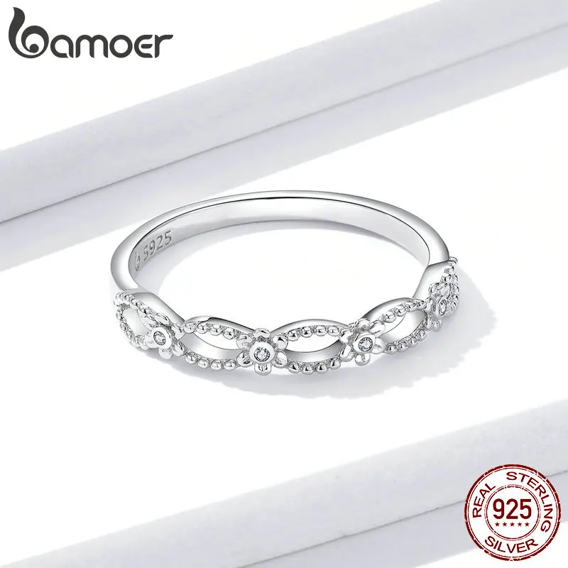 Серебряные кольца bamoer, кружевные перстни с узором макраме для женщин, 925 пробы серебряные ювелирные изделия 2020, бижутерия, BSR118
