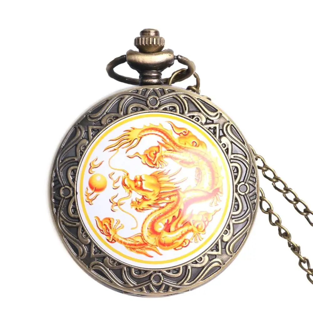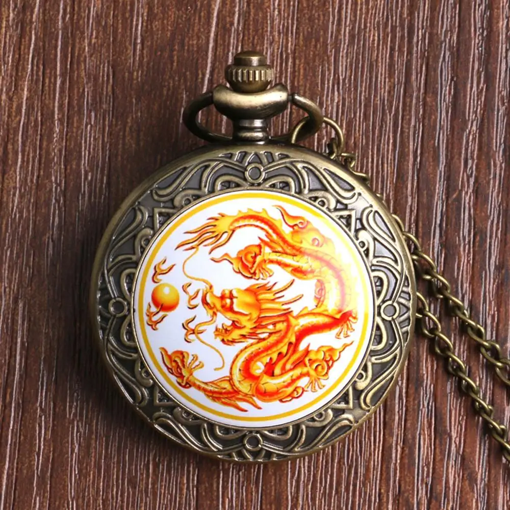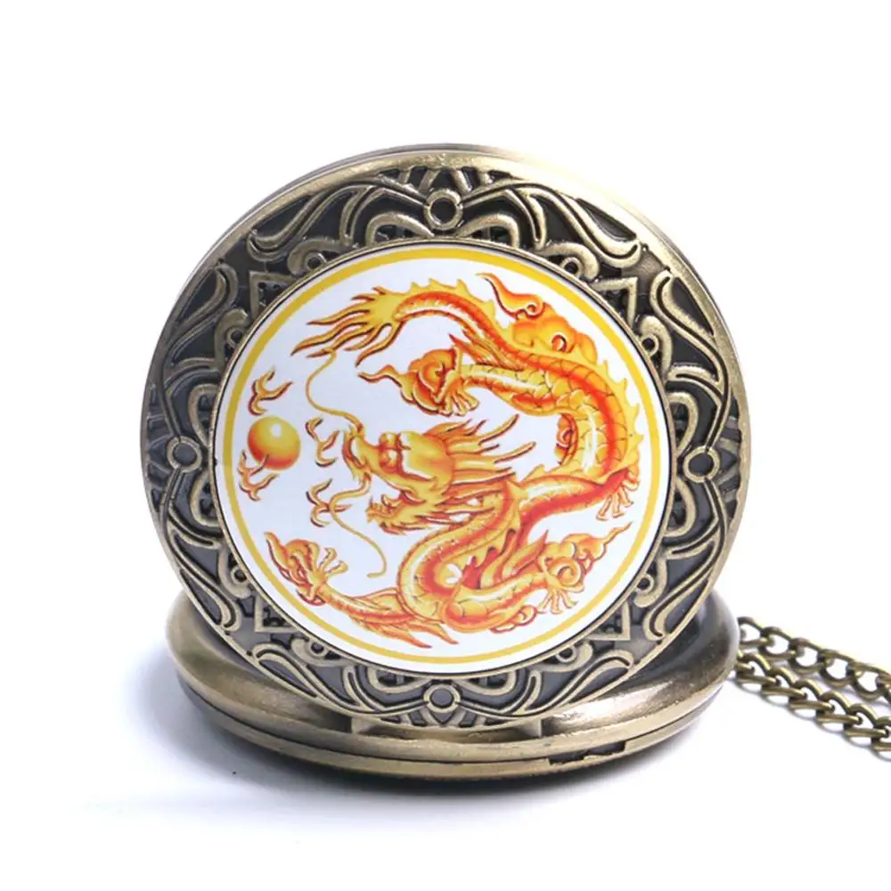 Дизайнерские кварцевые карманные часы с изображением китайского дракона, бронзовое ожерелье в стиле стимпанк, сувенирные подарки для мужчинженщин
