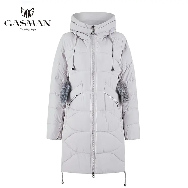 Пальто женское GASMAN, с лисьим мехом, зимнее, теплая, с капюшоном, 2021, 18821