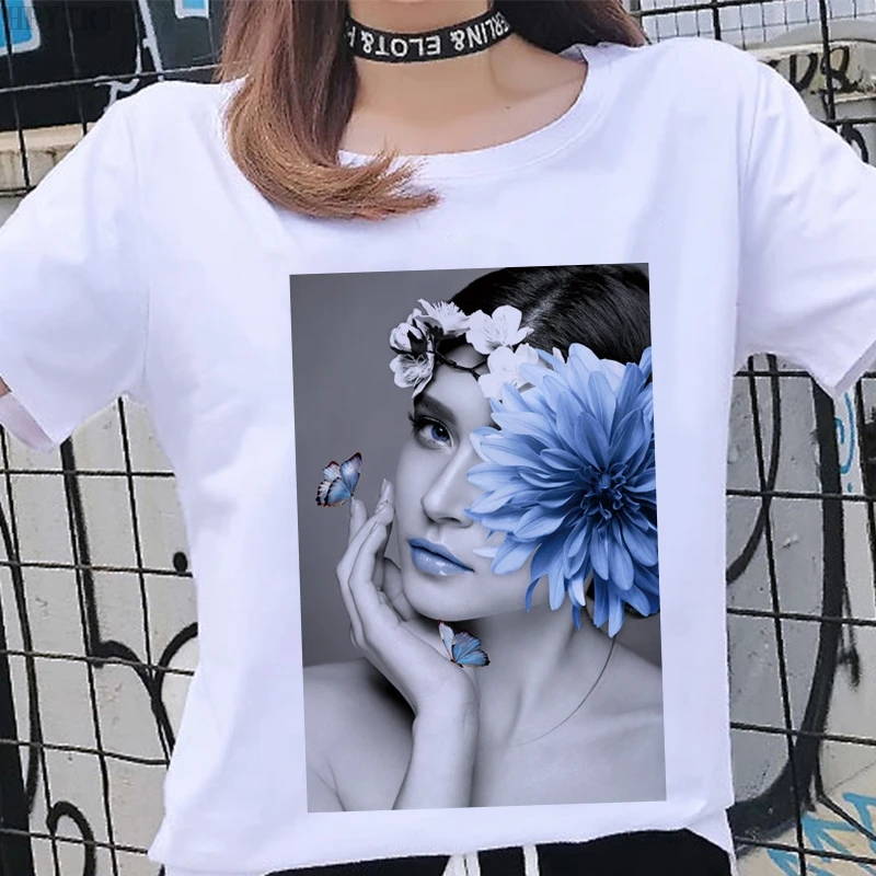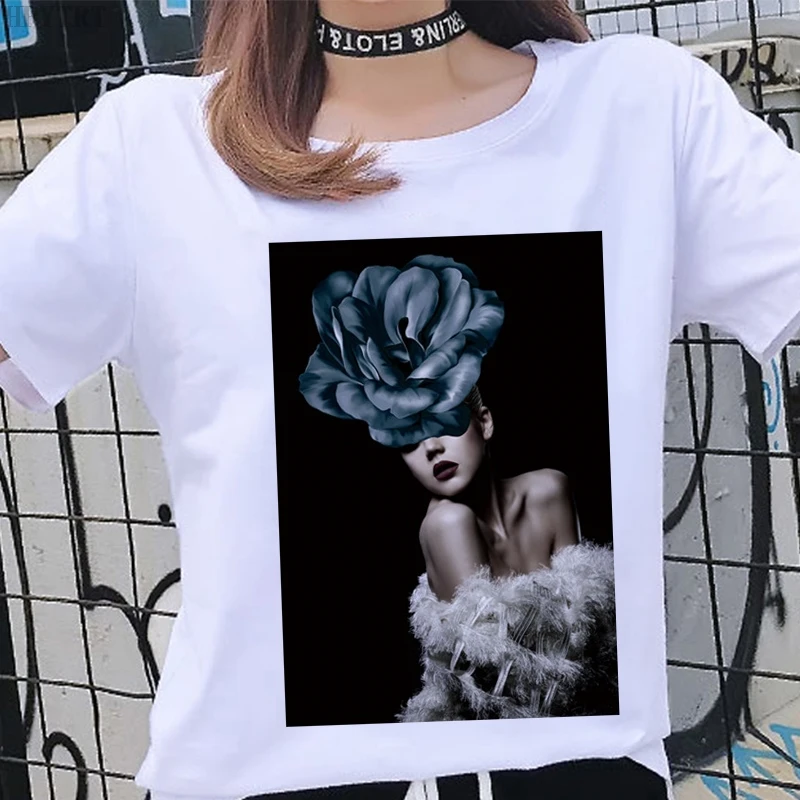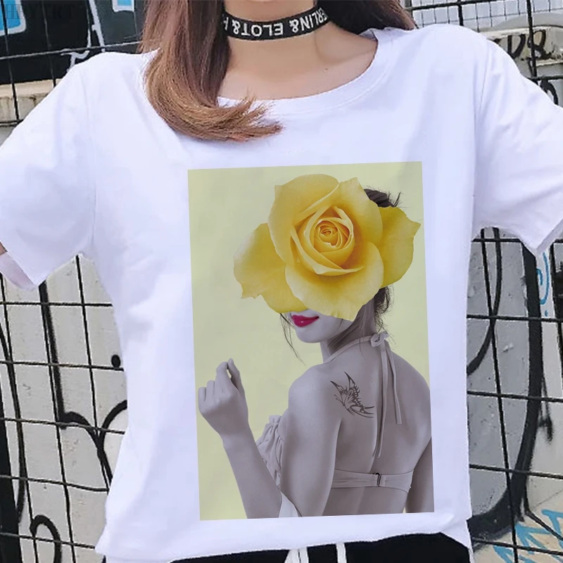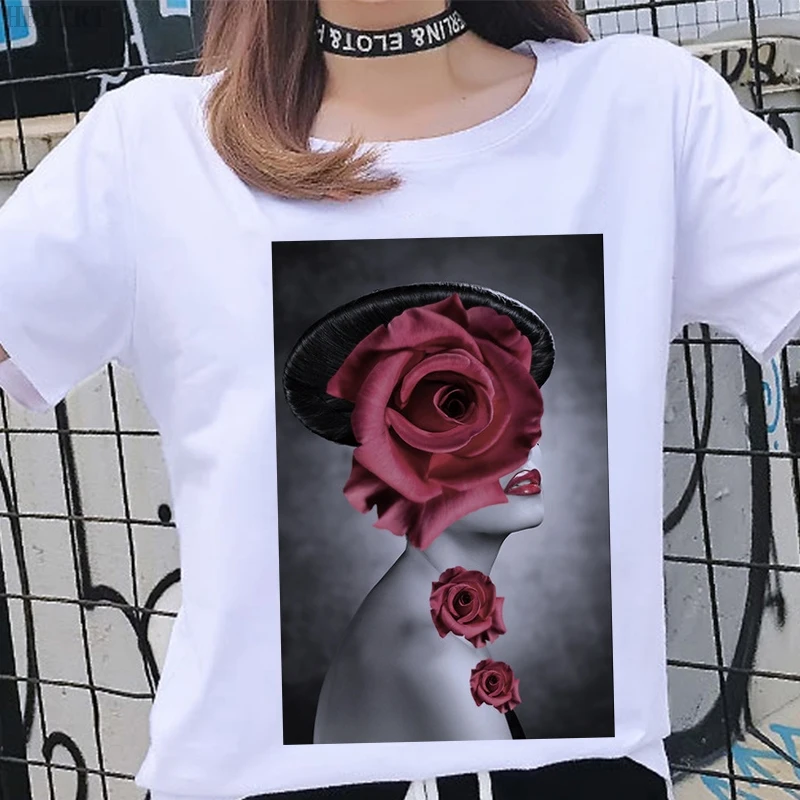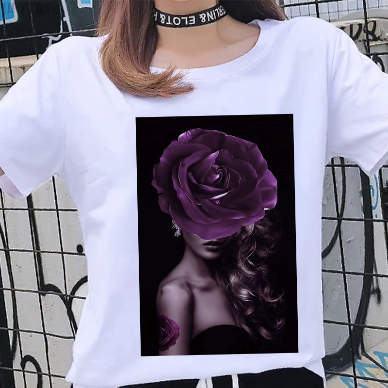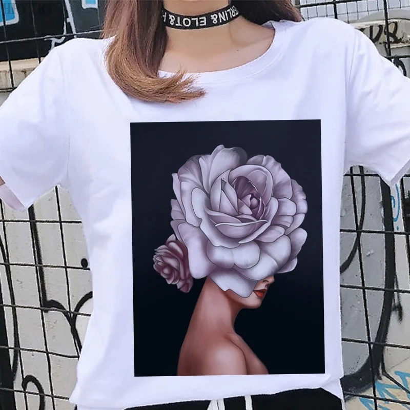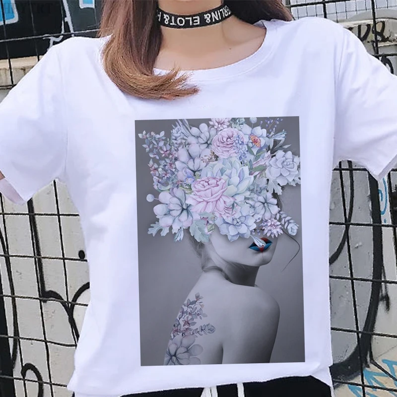 Модная красивая футболка с цветочным принтом, летняя Женская Футболка Harajuku большого размера, повседневная женская футболка с коротким рукавом и круглым вырезом