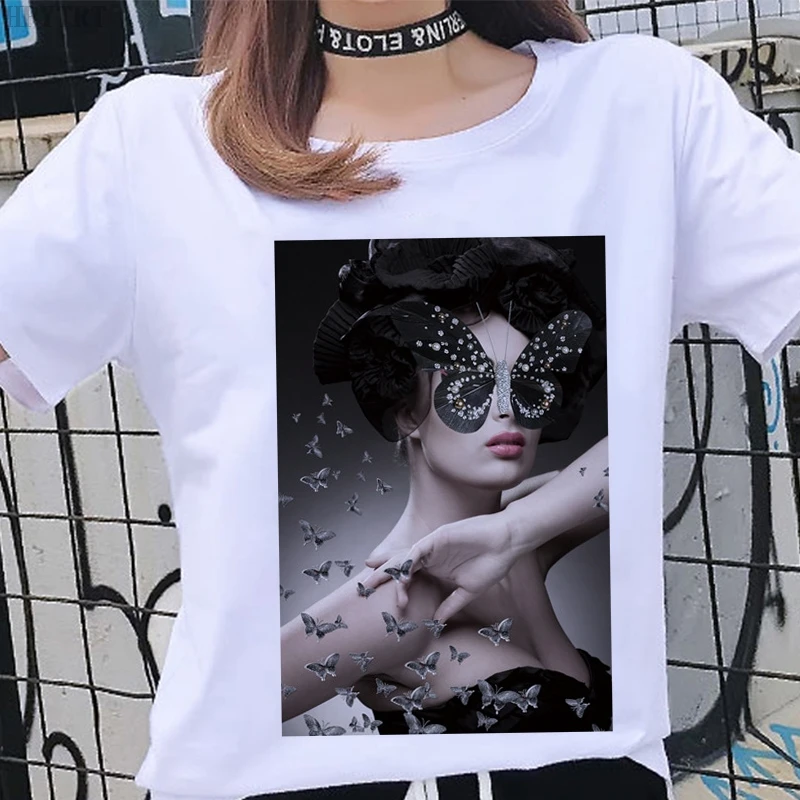 Женская футболка с принтом бабочки, топы, футболки с коротким рукав...