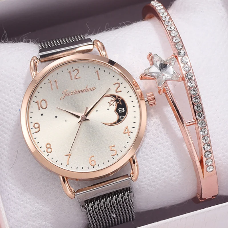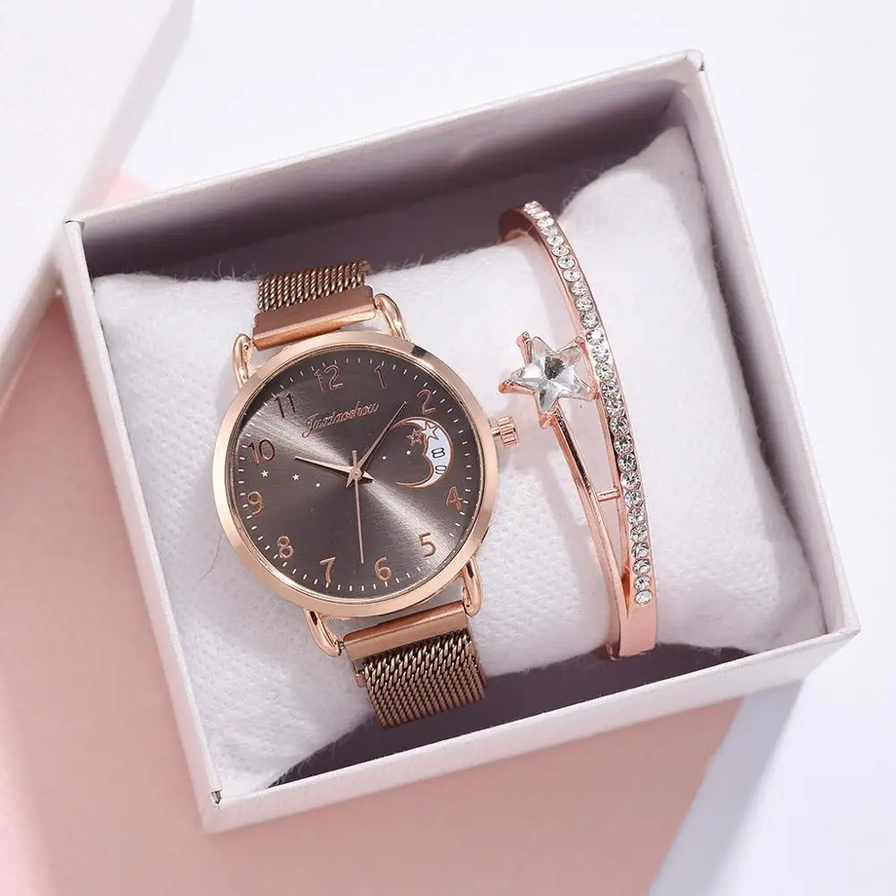 Женские кварцевые часы, с магнитной застежкой, в форме полумесяца, из нержавеющей стали, 2020