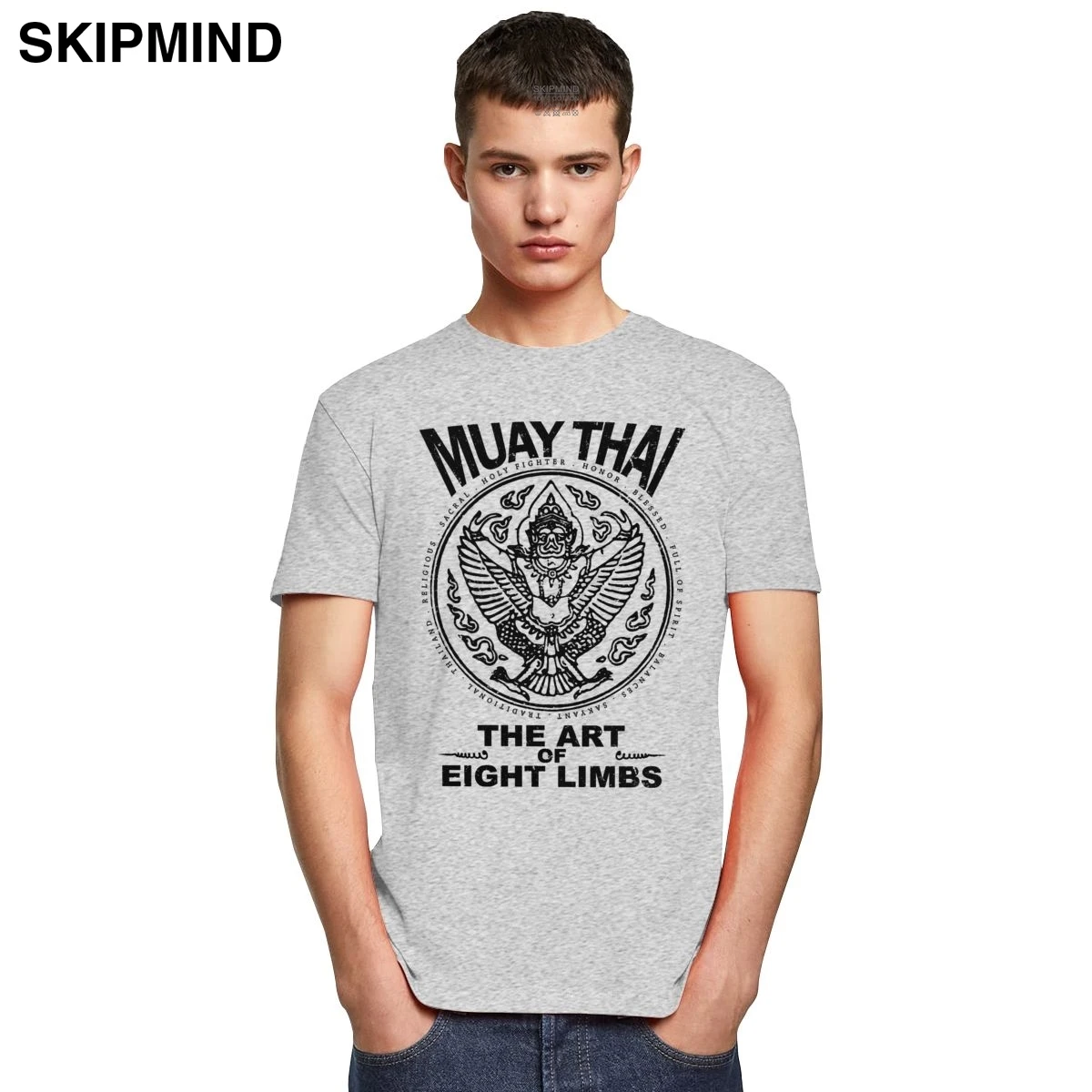 Модный Гаруда Муай Тай футболка Мужская мягкая хлопковая стильная футболка с О-образным вырезом с коротким рукавом Таиланд футболка Spirit бороться костюмы Мерч