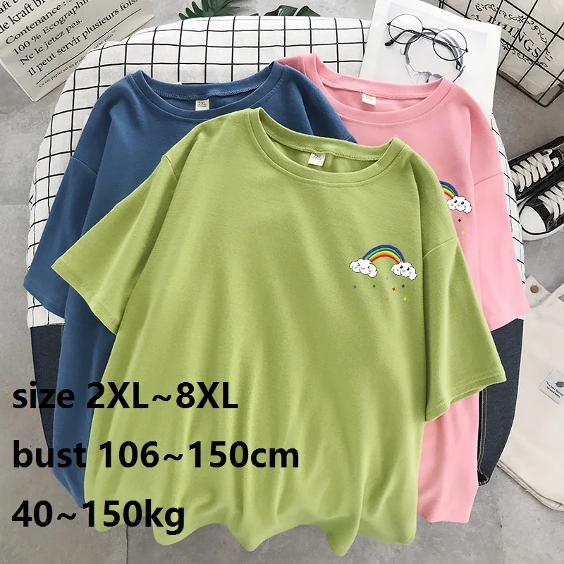 Футболка женская оверсайз в Корейском стиле, смешная Милая рубашка с коротким рукавом, большие размеры 5XL 6XL 7XL 8XL 40-150 кг