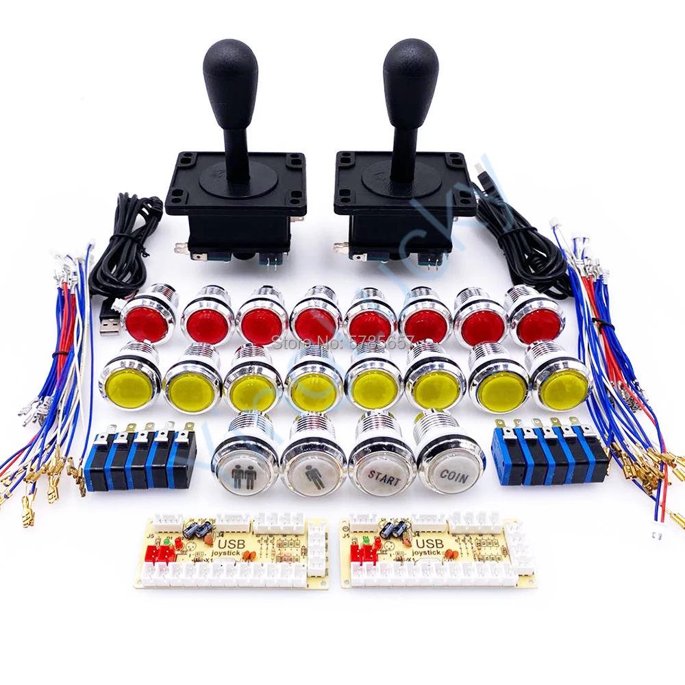 Набор для сборки аркадного джойстика, с американским джойстиком светодиодный светодиодной кнопкой, USB-кодировщиком для ПК, подходит для Аркада JAMMA MAME 2 игроков