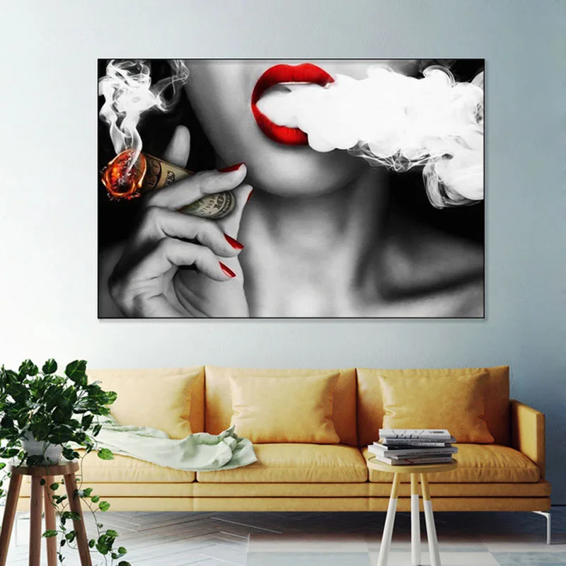 Ретро плакат и принты на стену с изображением Красной губы и девушки, Картина на холсте, Настенная декоративная картина для гостиной, домашний декор