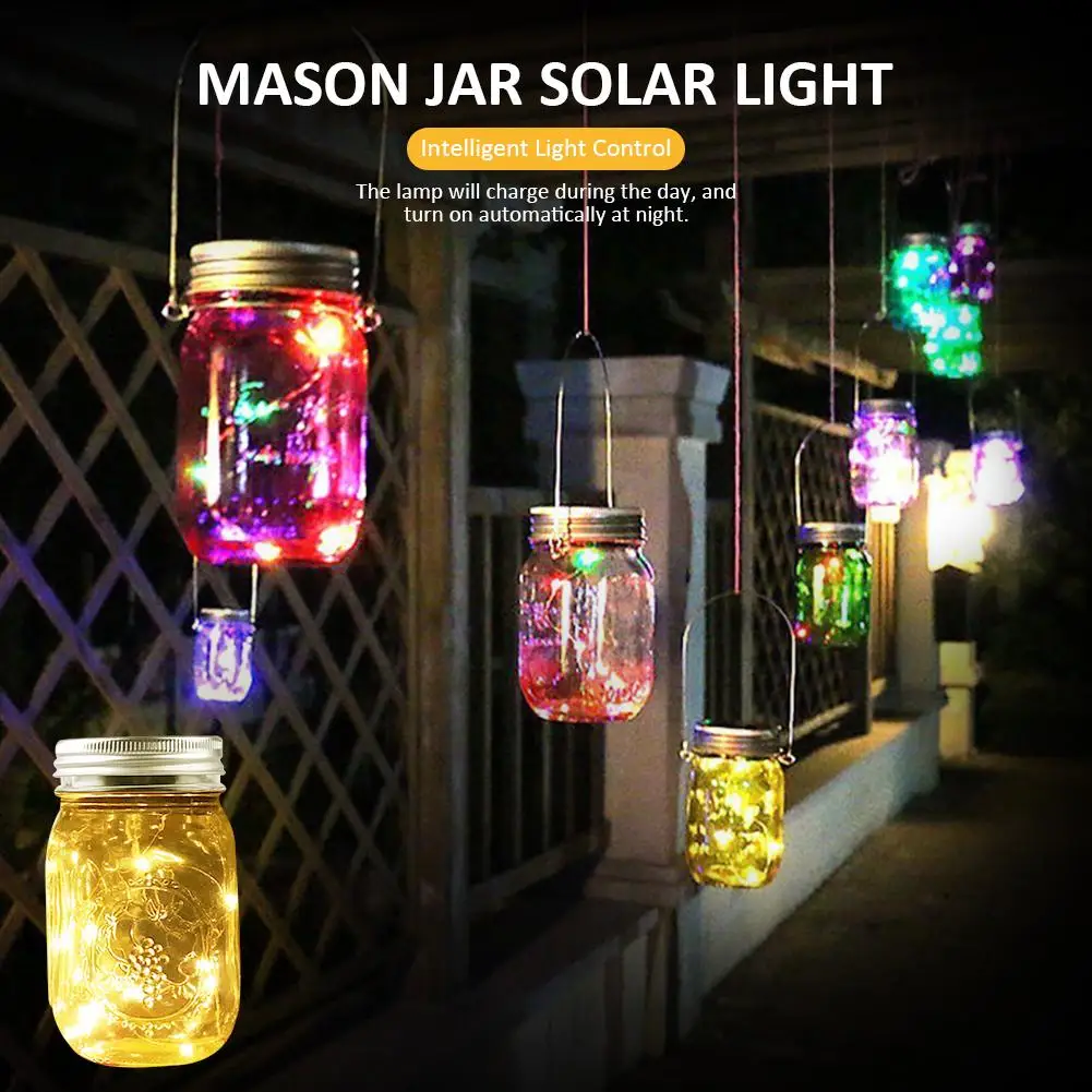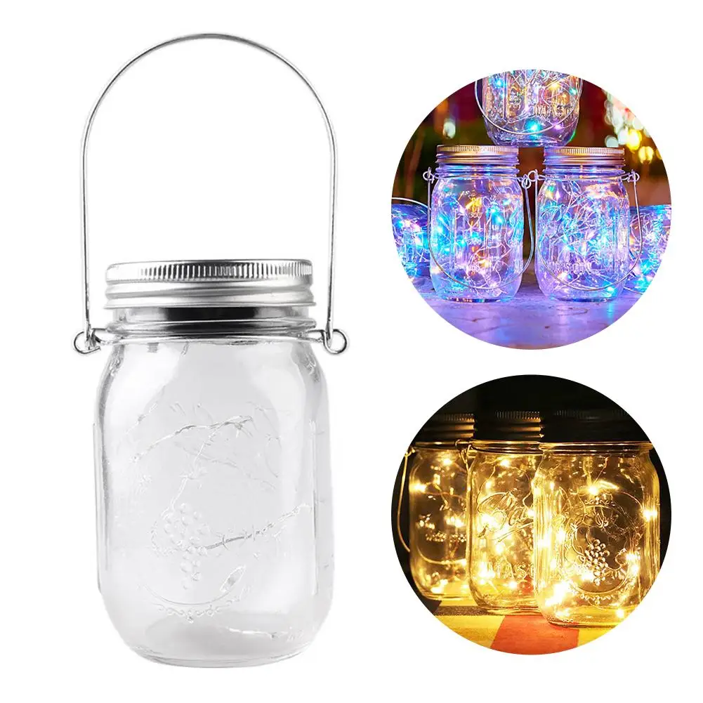20 светодиодовСветильник на солнечной батарее, водонепроницаемый, умный, управляемый, Mason Jar, подвесной фонарь, вечерние, настенный, декоративный светильник