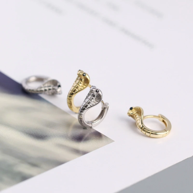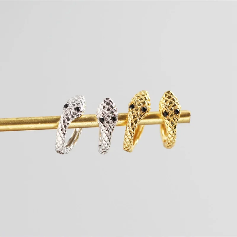 Серьги-кольца женские в виде змеи из серебра 100% пробы, 925 пробы