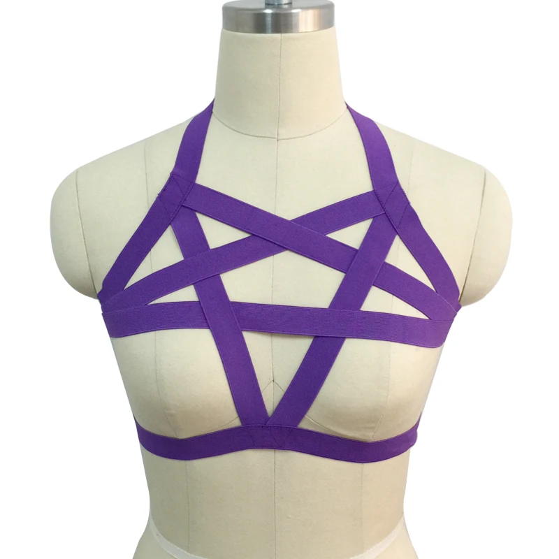 Нижнее белье-бра-портупея бюстгальтер пурпурный с пентаграммой, уко...
