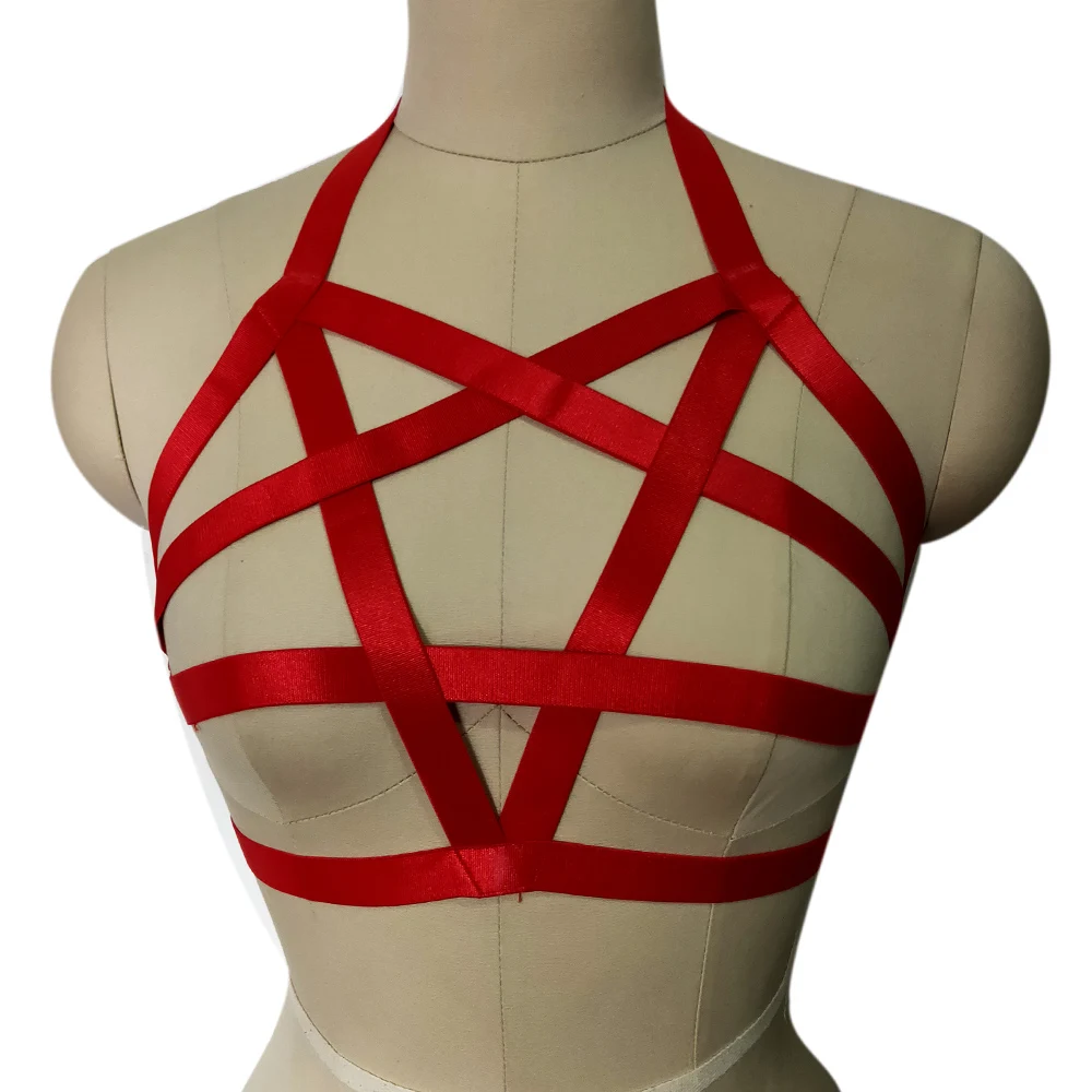 Нижнее белье-бра-портупея бюстгальтер пурпурный с пентаграммой, укороченный топ, упряжь для тела, Фетиш клетки, готический бюстгальтер для бондажа, одежда для Хэллоуина, в стиле Харадзюку