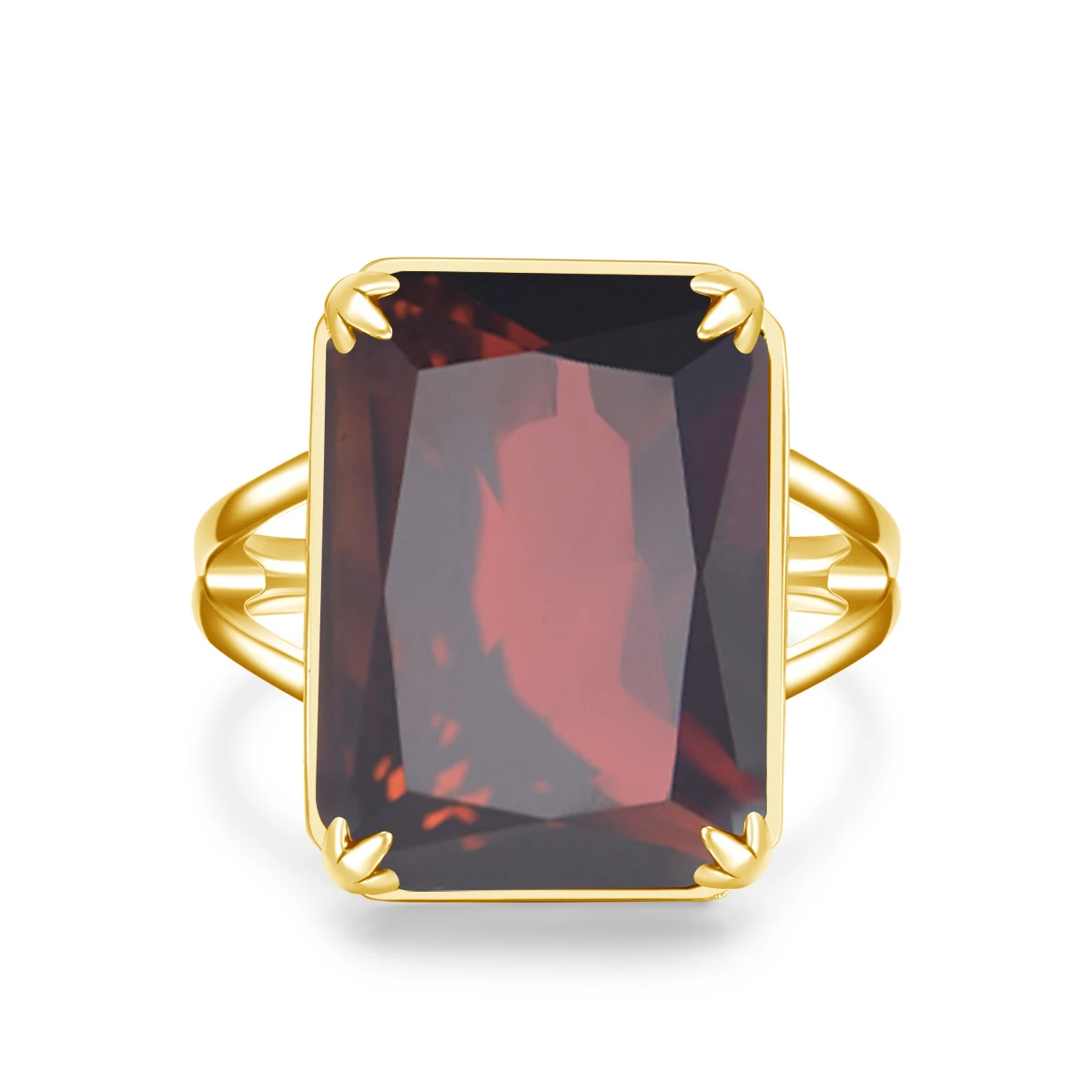 Тип металла: 925 пробы серебро + позолотаТип камня: синтетический гранатРазмер основного камня: 13*18 ммЦвет камня: темно-красныйФорма камня: прямоугольникДоступные Размеры колец: американский размер #5 , #6 , #7 , #8 , #9 , #10