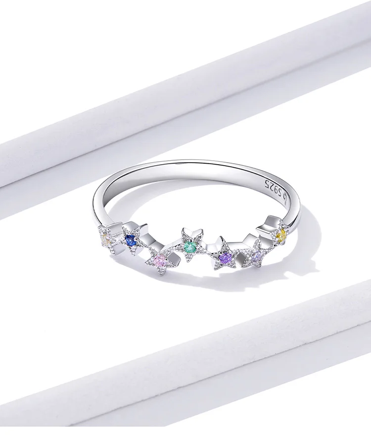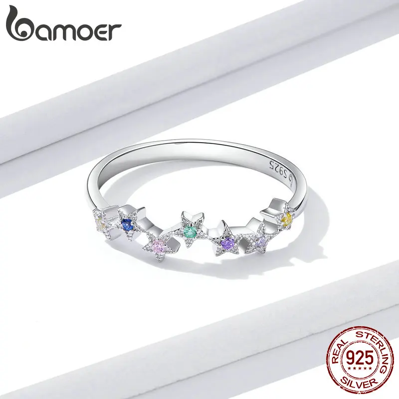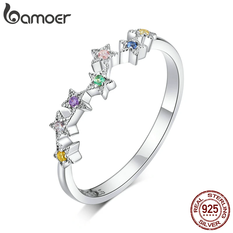 Bamoer Аутентичные 925 пробы Серебряные Красочные Звездные Кольца на палец для женщин гипоаллергенный подарок эффектные ювелирные изделия BSR133