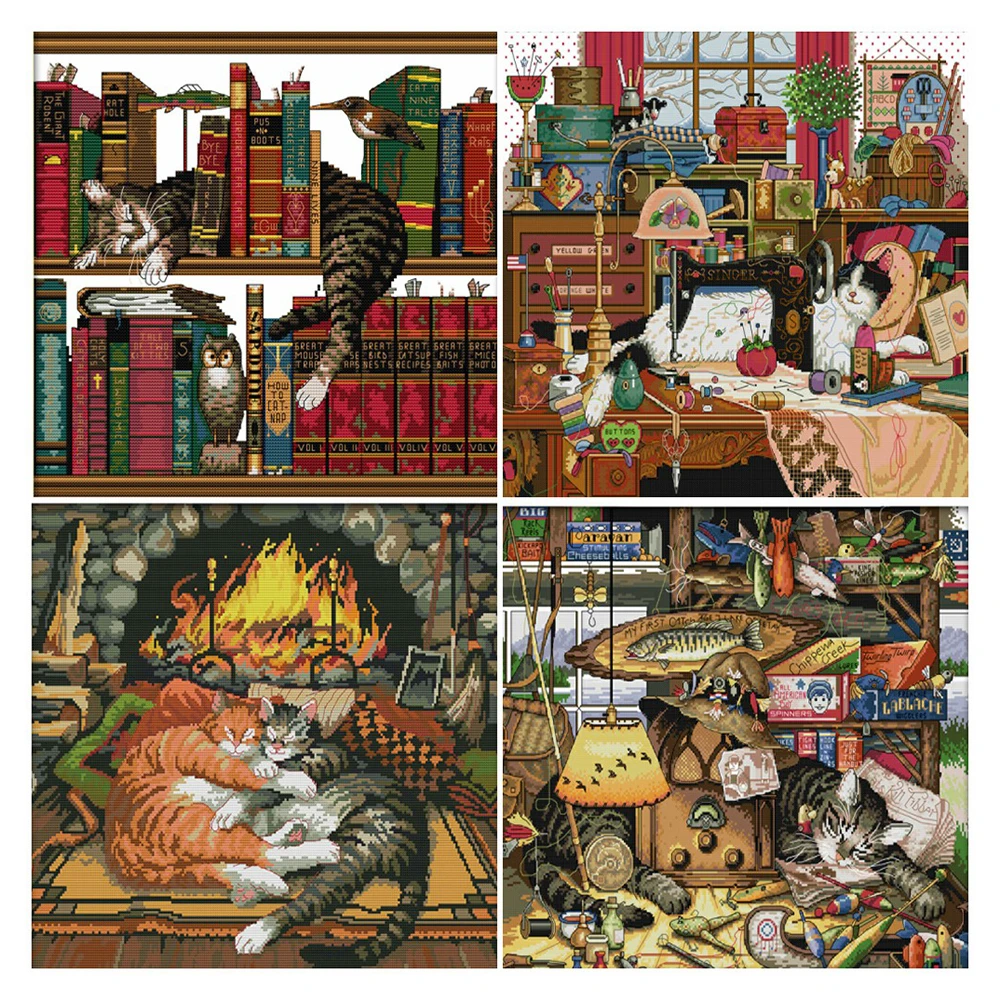HUACAN красочные наборы для вышивки крестиком с котом, 14ct 11ct, б...