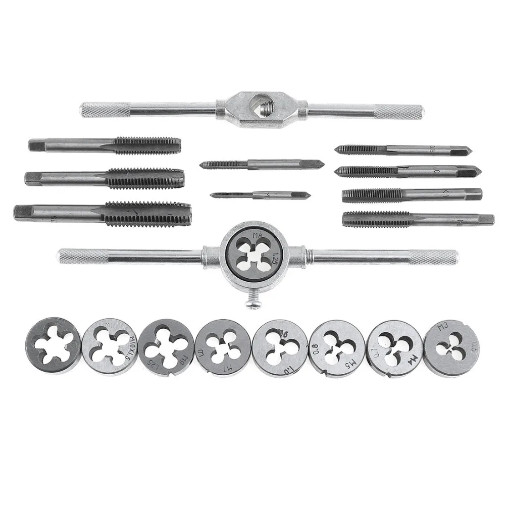 20 шт.компл., M3-M12 метрический кран и штамп, резьбовой кран и насадки, регулируемый гаечный ключ, инструменты для резьбы, винтовой ручной инструмент